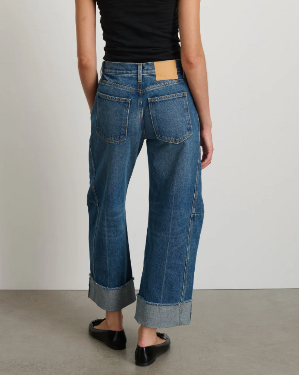 Sits just below the waist for a relaxed look • An extra slouchy fit jean, with shaped outseam and a versatile finished length, 29” cuffed, 32” long.