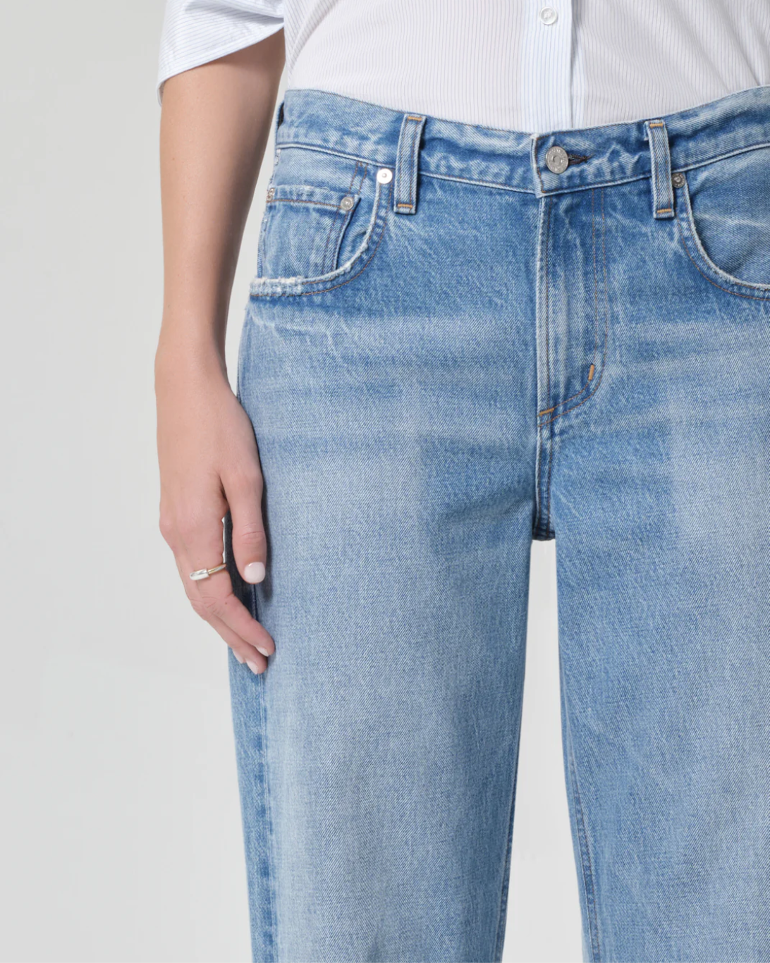 The ‘Lindz’ is a relaxed straight leg with a low rise and an effortless attitude. Crafted from rigid regenerative cotton with a soft hand, it offers vintage appeal with modern ease. The Cupid wash is a light-to-medium indigo with subtle fading—ideal with everything from crisp shirting to worn-in tees and sneakers.