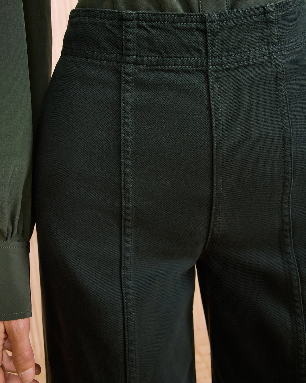 Elongating the form, the Bianca is a classic wide-leg design with center-front raised seams down each side and a Hollywood waistband that defines and flatters. It’s responsibly handmade from premium denim in a rich and versatile green for an elevated essential.