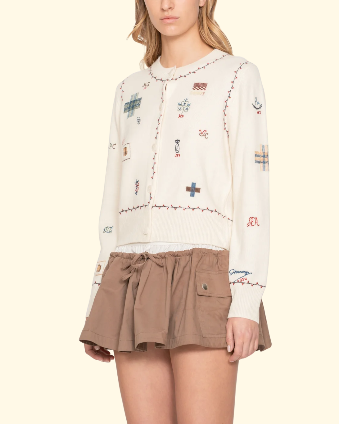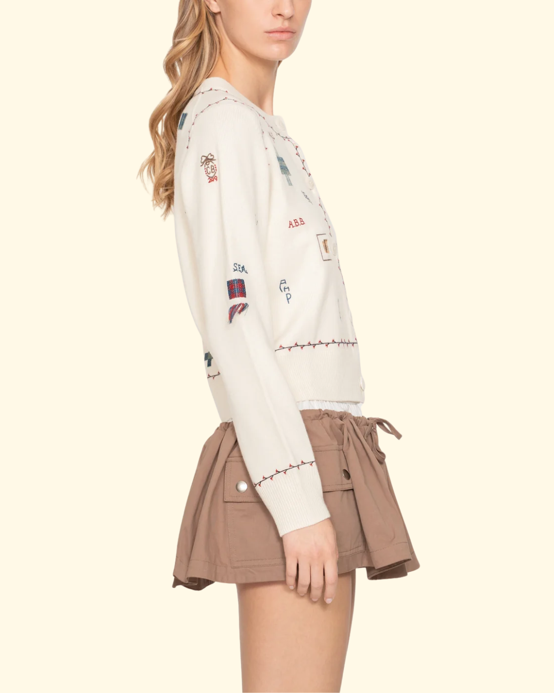 The Claira embroidered cardigan features long sleeves and delicate floral embroidery. Hand-mended stitching throughout and embroidered initials add an artisanal, bespoke touch. A beautifully crafted piece that elevates everyday dressing with effortless