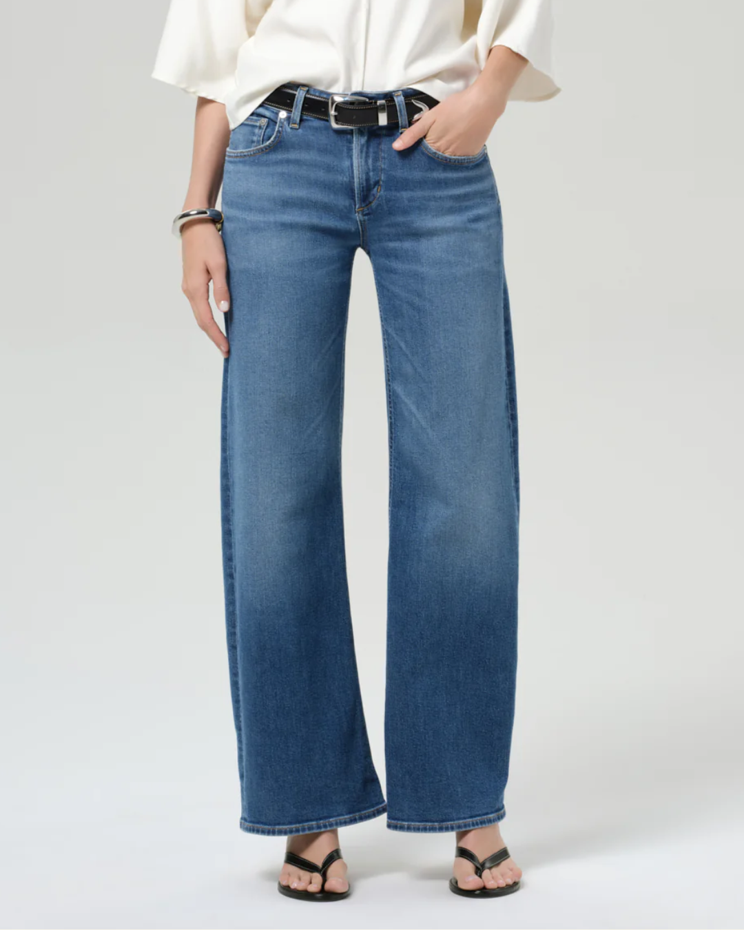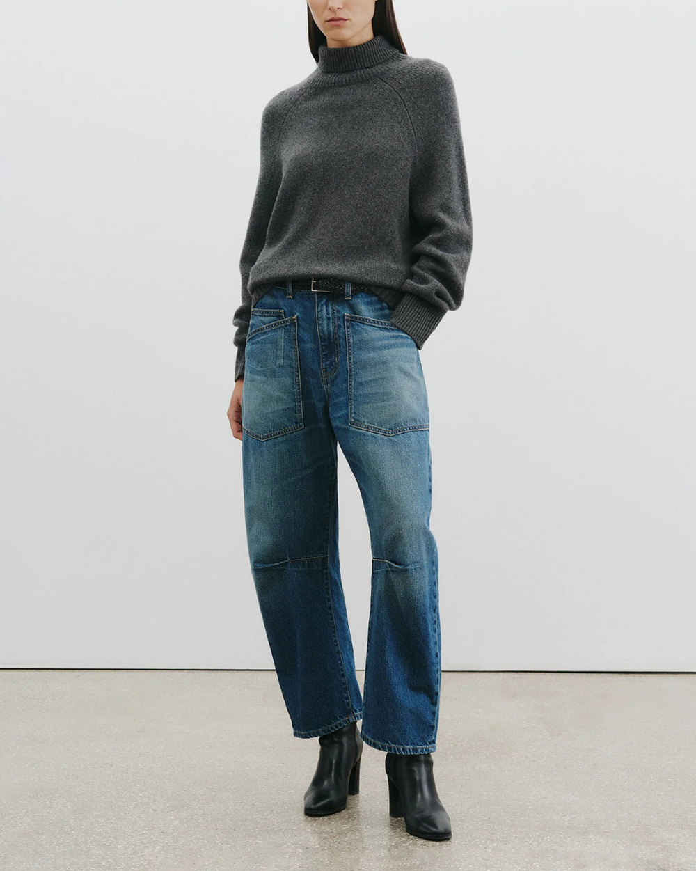 Pleated Waistband Jean | Concrete Blue