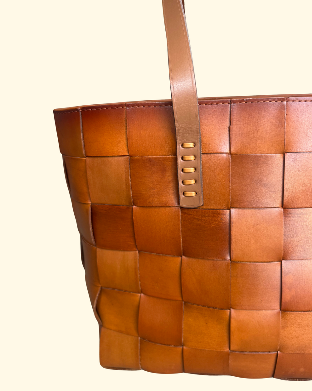 Crafted with the finest, supple cow leather, the Japan Tote boasts a cross-woven design that exudes a contemporary and artistic flair.