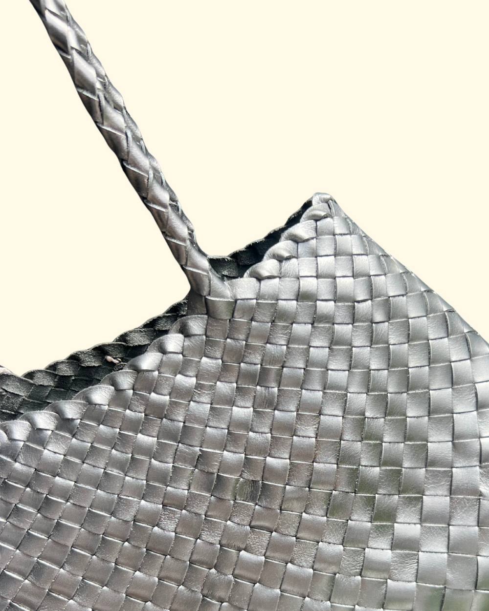 Santa Croce bag is formed of irregular leather weaving straps that taper towards the brim, creating a practical yet elegant shape that’s perfect for running around the city—taking your outfit from day to night. Remaining true to traditional basket weaving techniques, the Santa Croce comes unlined and has an open top.