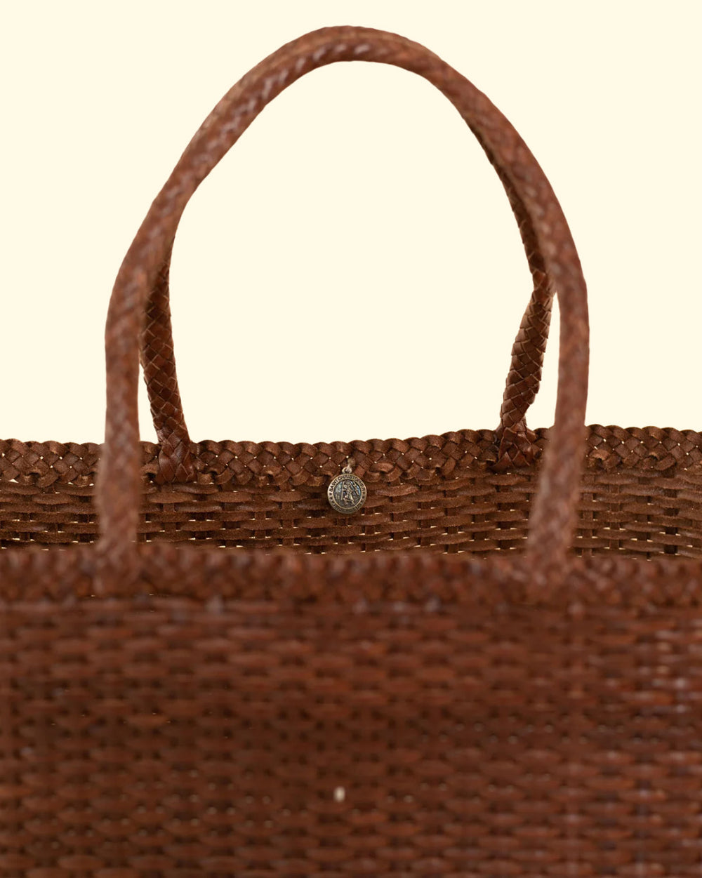 A roomy, hand-woven basket in smooth, buffalo calf leather. Handcrafted by artisan weavers in one piece, the diagonal chevron weave is what makes this style unique. And, remaining true to traditional basket weaving techniques, the bag comes unlined with an open top. Ideal for your next beach outing or a trip to your local market.