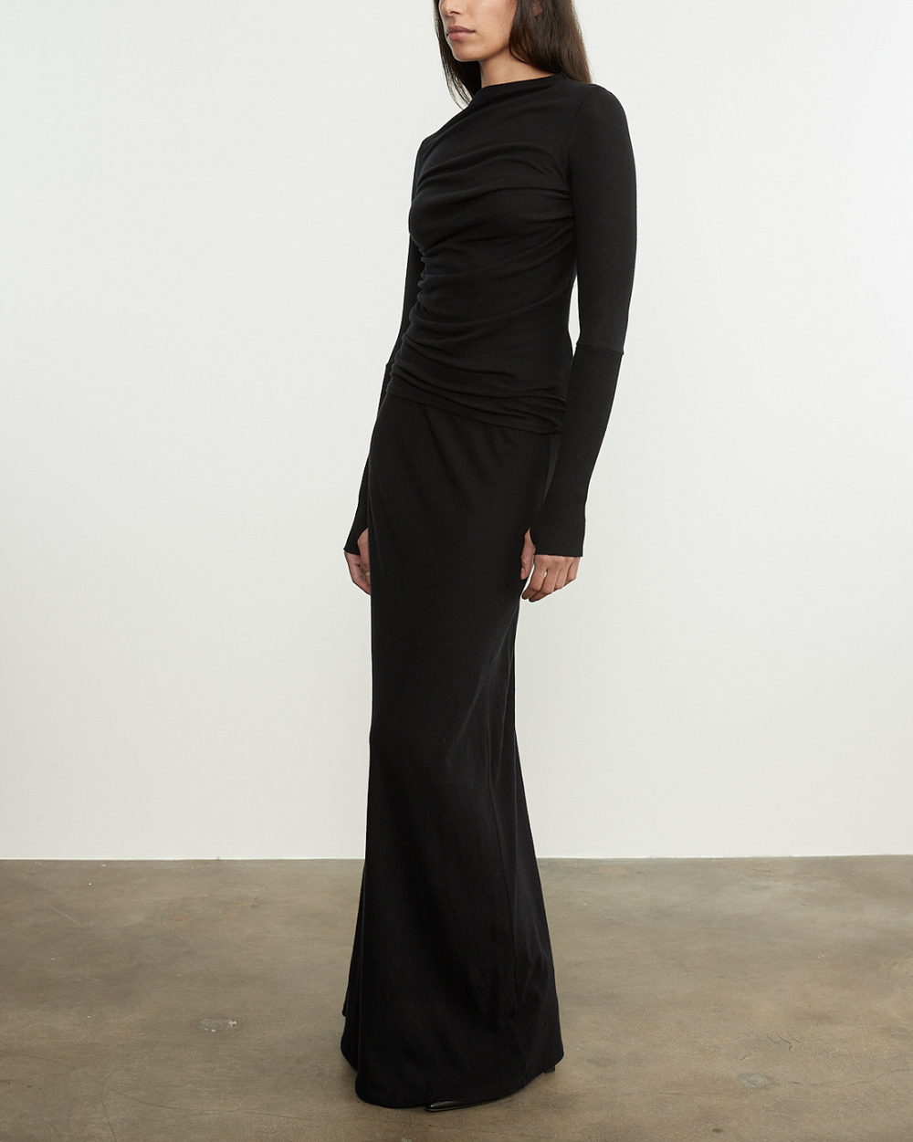 A maxi length bias skirt cut from the brand's signature soft cashmere jersey. Features an elasticized waistband.