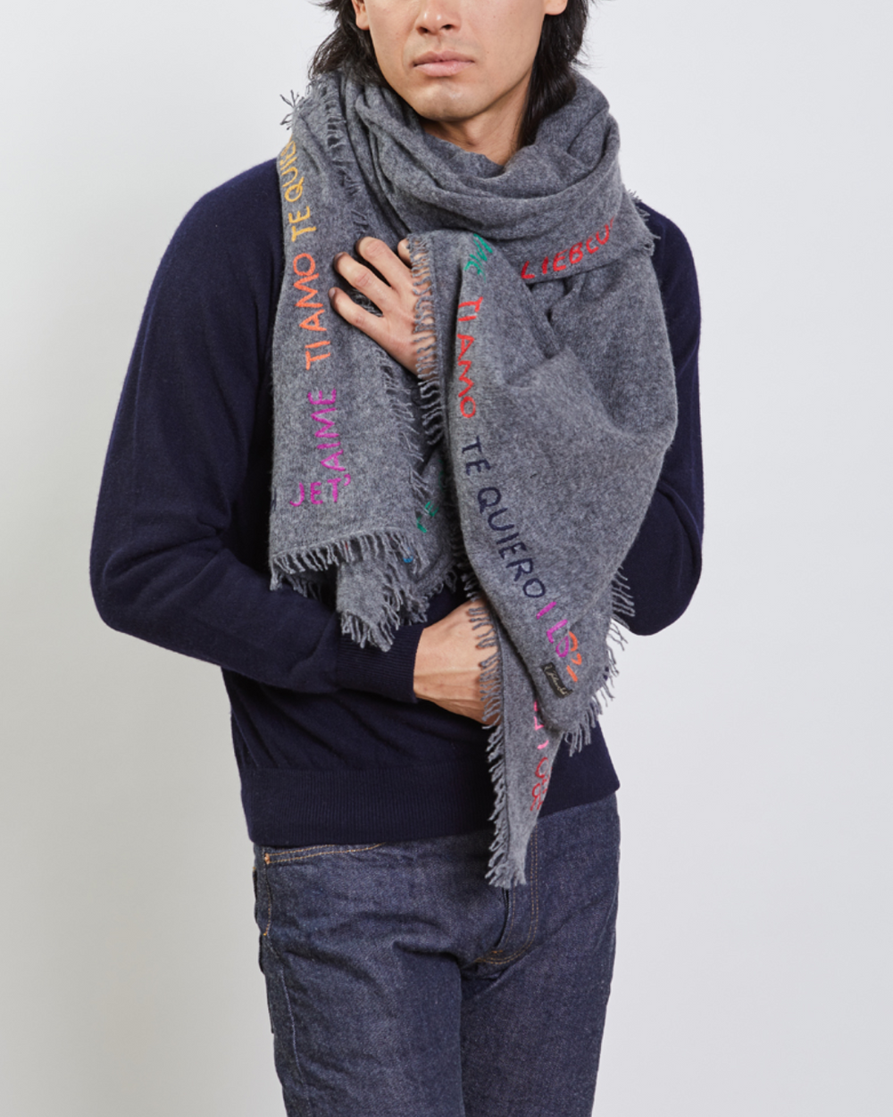 The scarf of the season is called Te Quiero. Classic rectangular design in pure cashmere but with refined and loving multi-colored embroidery along the edges. Love always inspires.