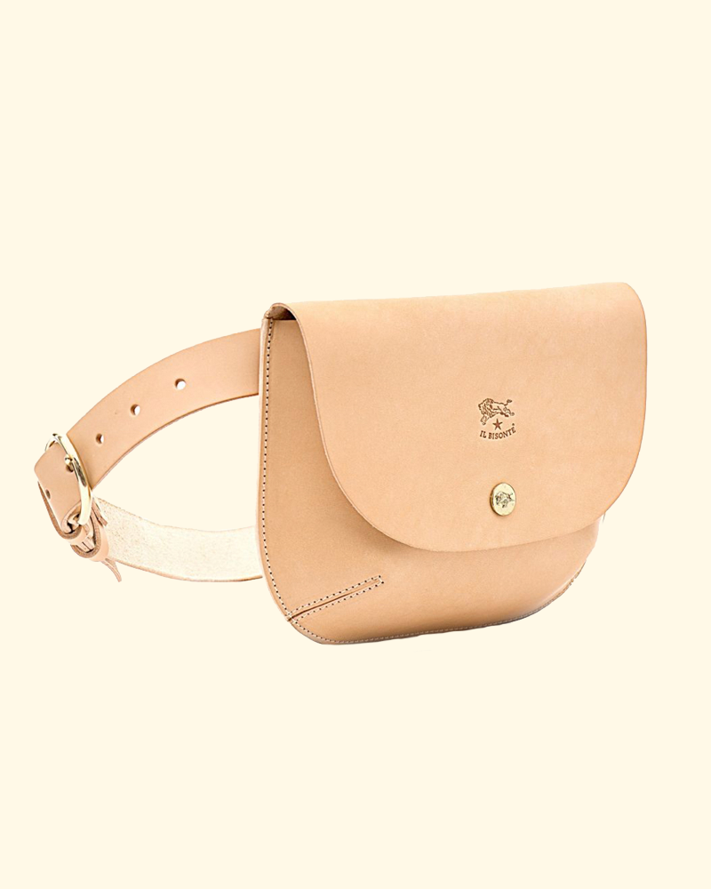 Women's small waist bag in vegetable tanned cowhide leather, with adjustable and removable belt. Made in Italy by master craftsmen in Il Bisonte's 30 km supply chain. The length of the belt can be adjusted with the brass buckle. Unlined.