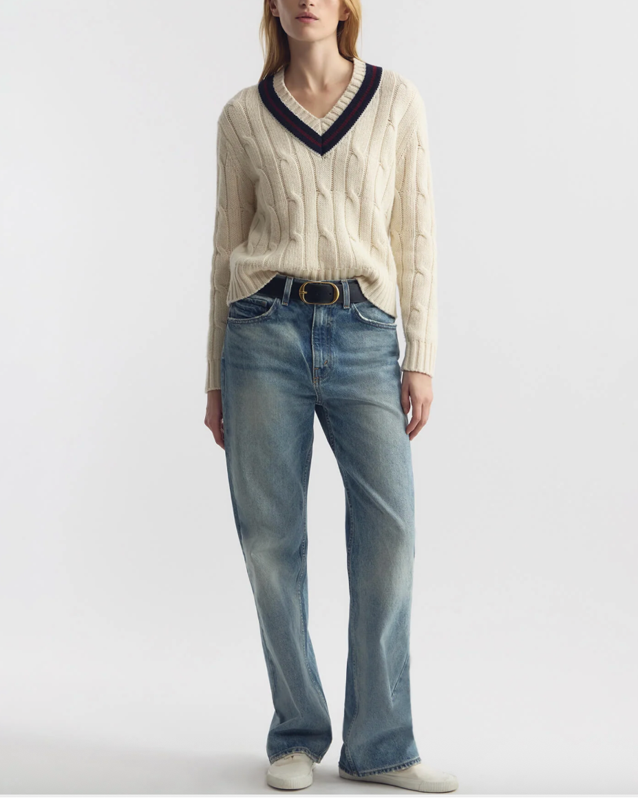 Linka Stripe Sweater | Navy/Ivory Stripe