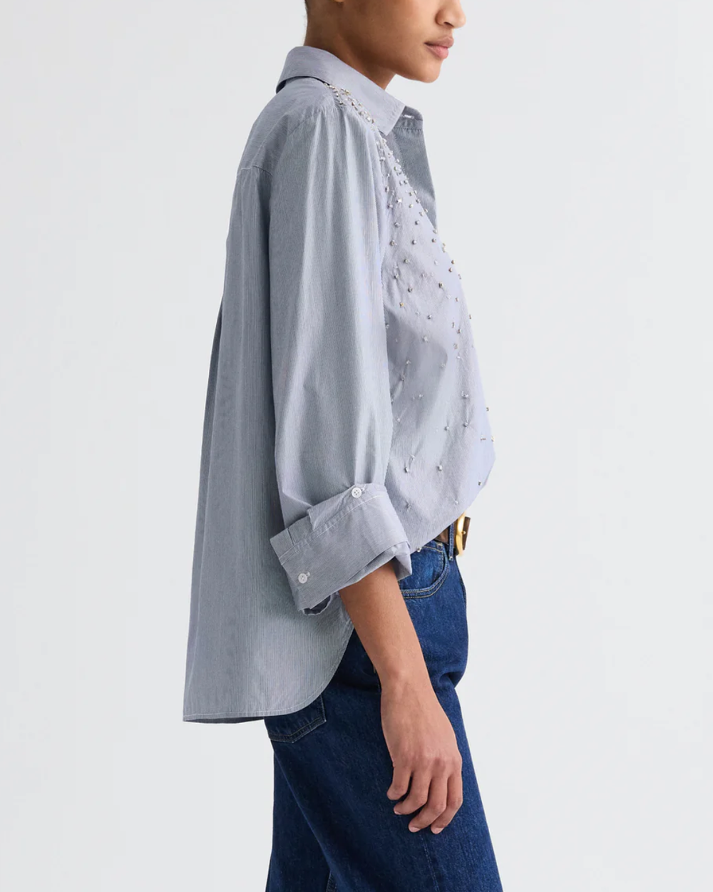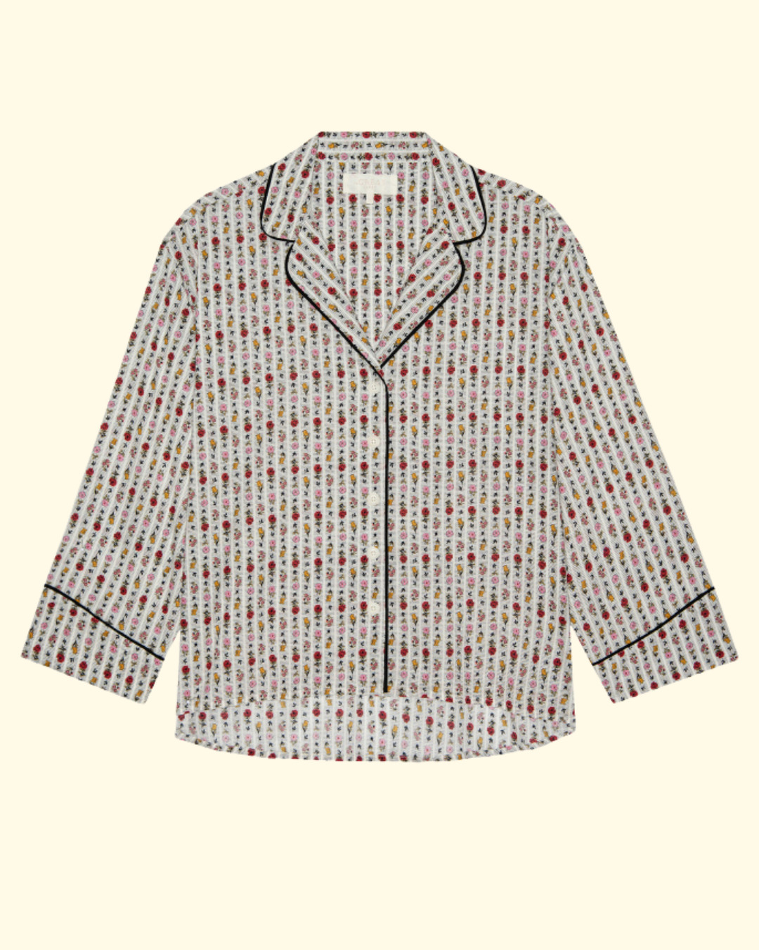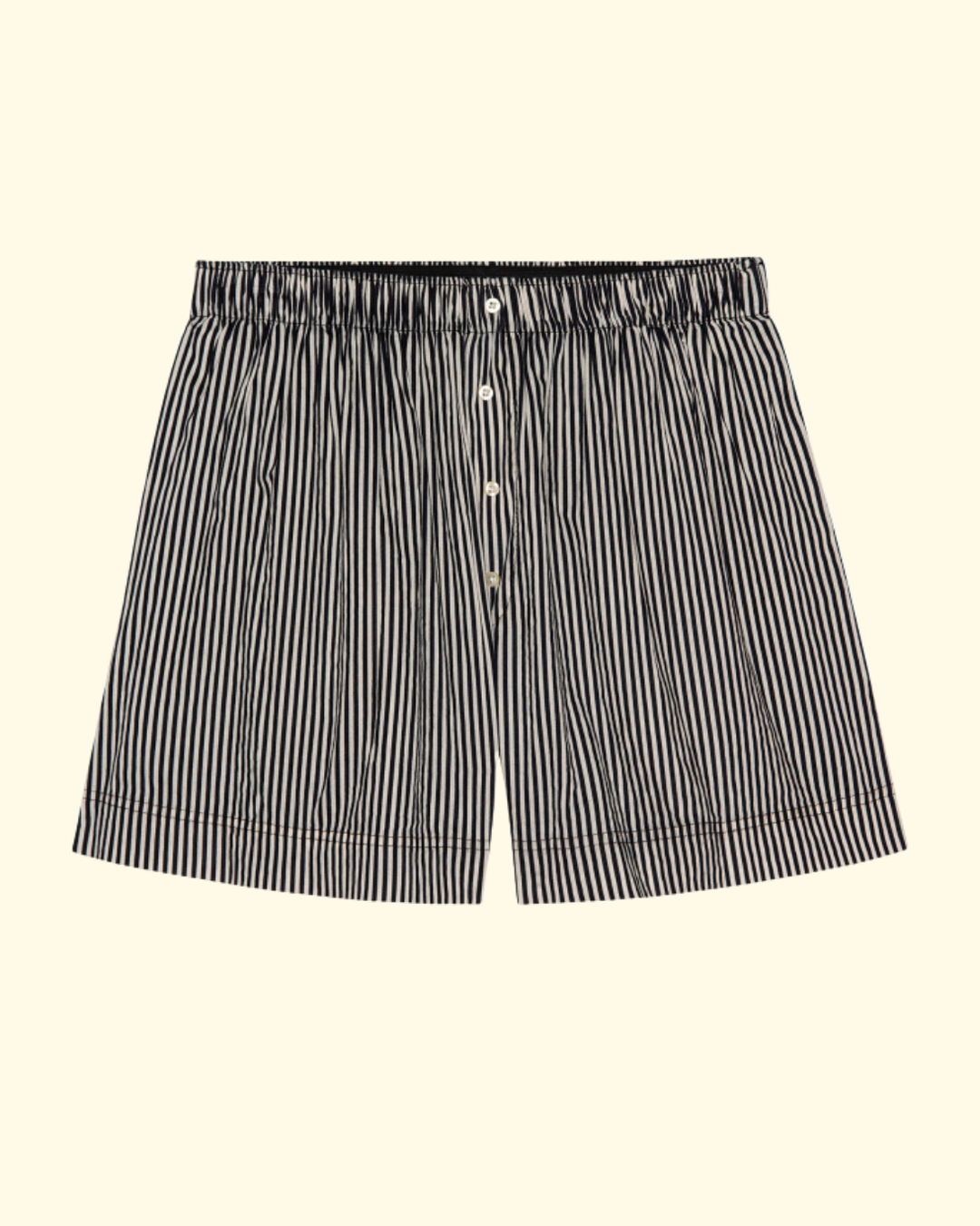 The Smocked Sleep Shirt | Black and Cream Stripe