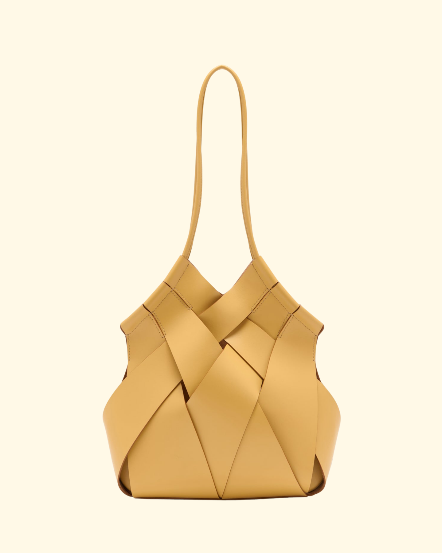 The Charlotte Shoulder Bag is a masterpiece of artisanal craft inspired by traditional basket weaving. Using time-honored handmade techniques, each leather panel is individually crafted and carefully shaped into a distinctive silhouette, then further refined with hand-painted edges. Reimagined in a lush, earthen yellow, this shoulder bag has an internal suede-lined base to secure your belongings and tubular straps for comfort. Smooth calfskin leather, suede lining and a hammered brass toggle at the top. Handcrafted in Italy.