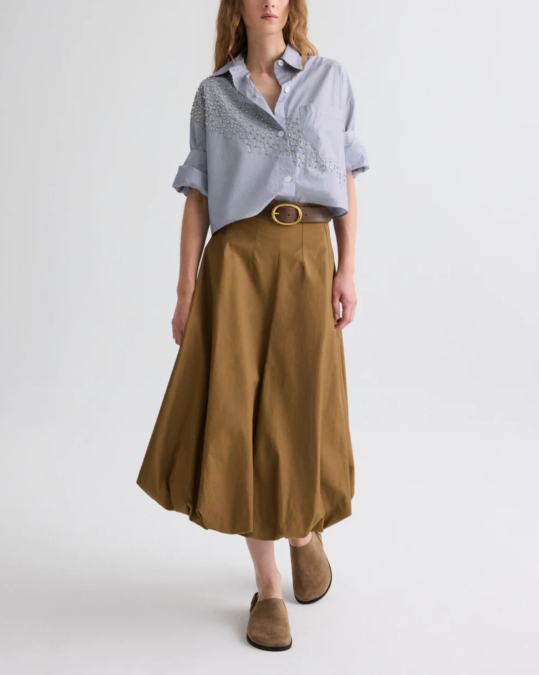 TWP’s signature short-sleeved button-down is crafted in ultra-fine Italian striped cotton shirting and hand-embellished with crystals. The Next Ex is a cropped, boxy silhouette complete with a chest patch pocket, button-up placket, spread collar, and our signature double roll button cuffs.