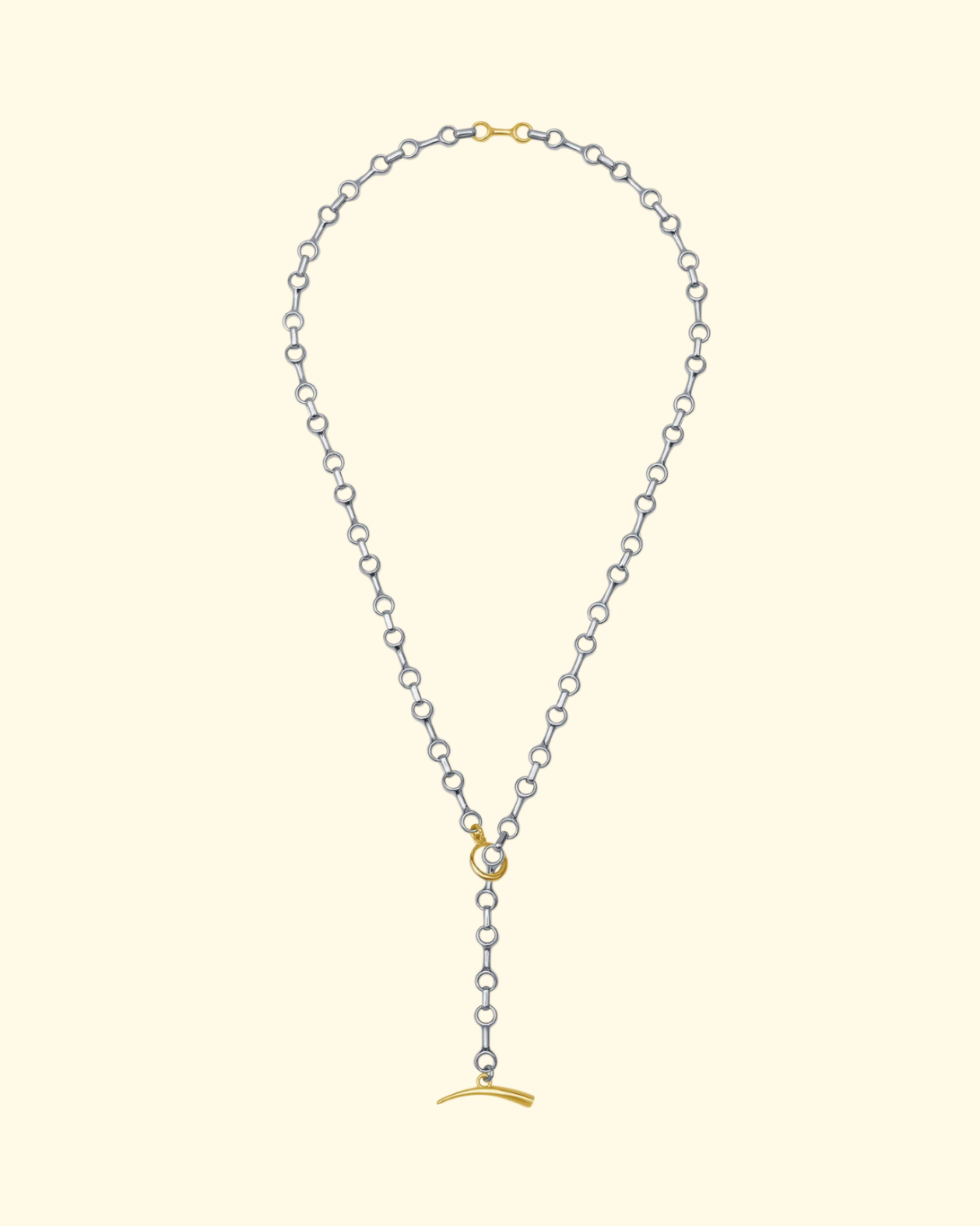 15mm Two Tone Double Beam Neckless | Sterling Silver+14K Yellow Gold