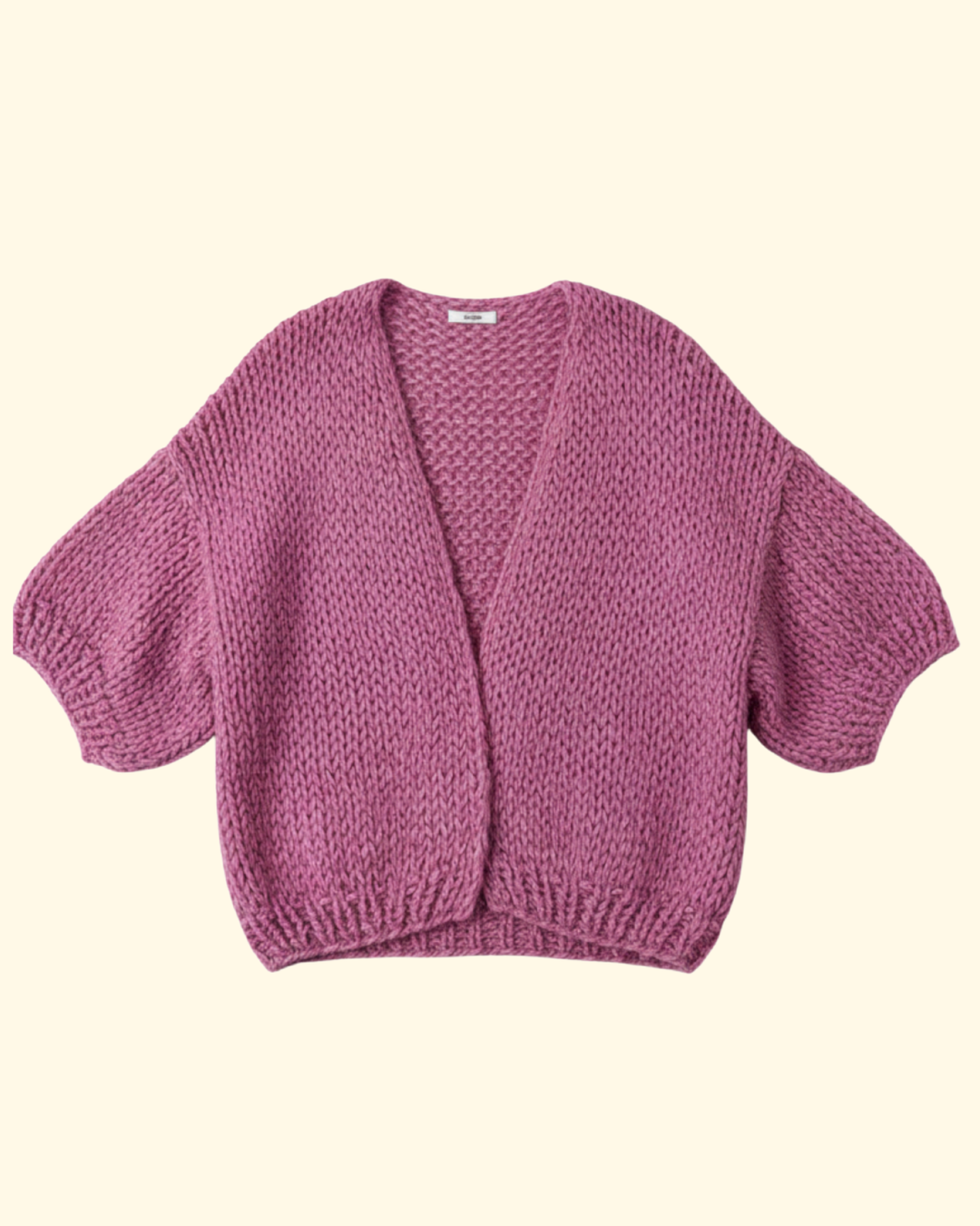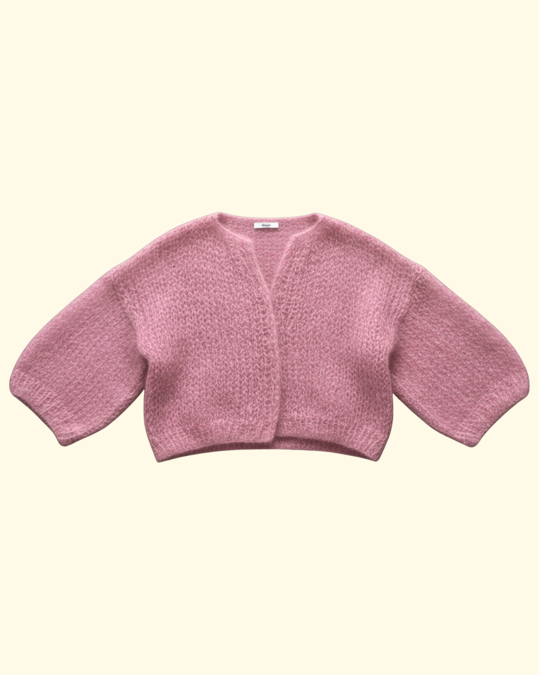 Alpaca Bomber Short Sleeve Cardigan | Pink Melange