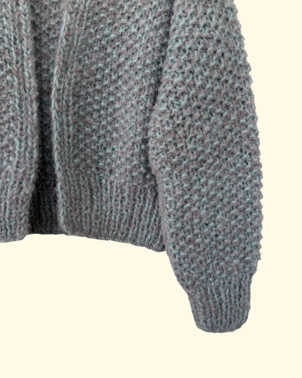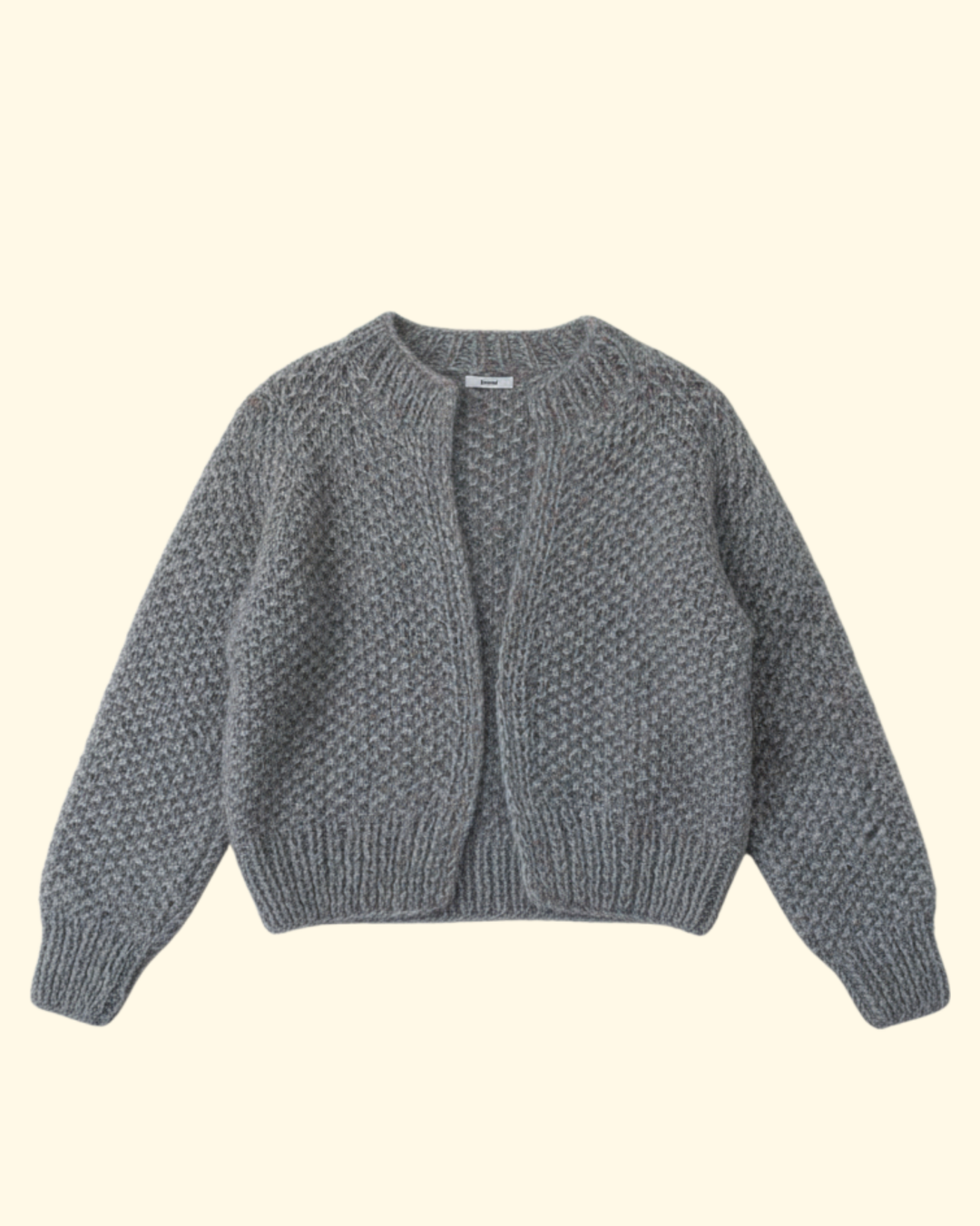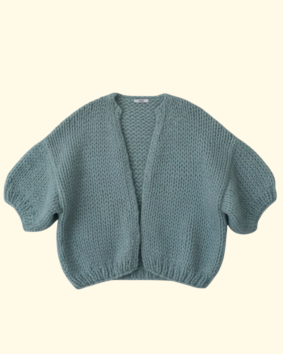 Chunky Alpaca Pearl Short Cardigan | Steel Green-Rose