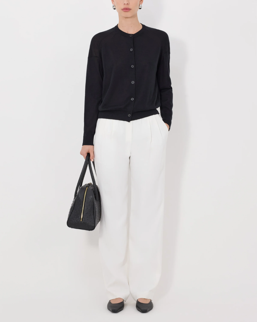Kita Fine Crewneck Cardigan | Black