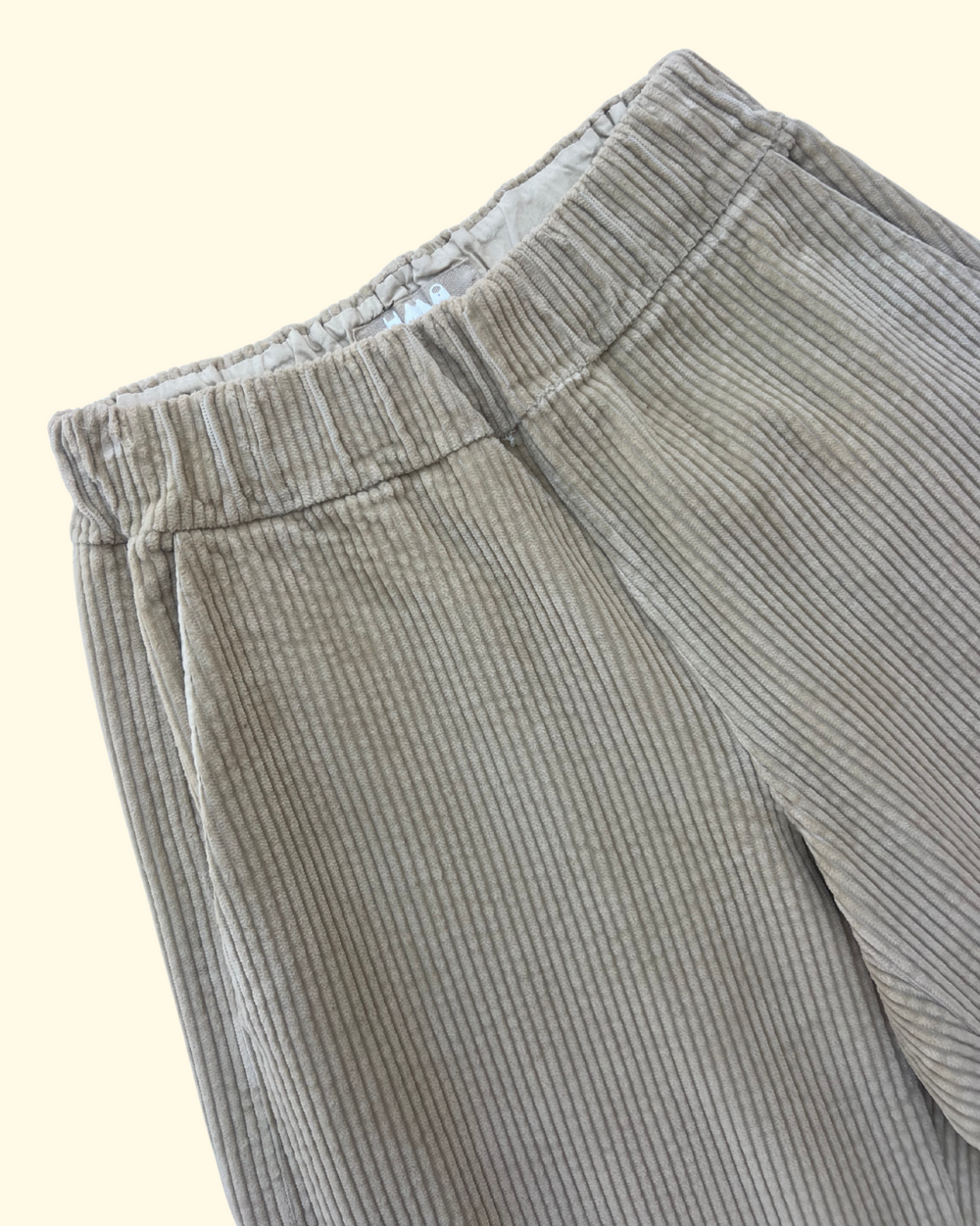 Labo.art cemento pull-on pant with wide, straight legs and an elasticated waist in wide wale cotton corduroy. Features angled front pockets and patch pockets at back. Relaxed fit.
