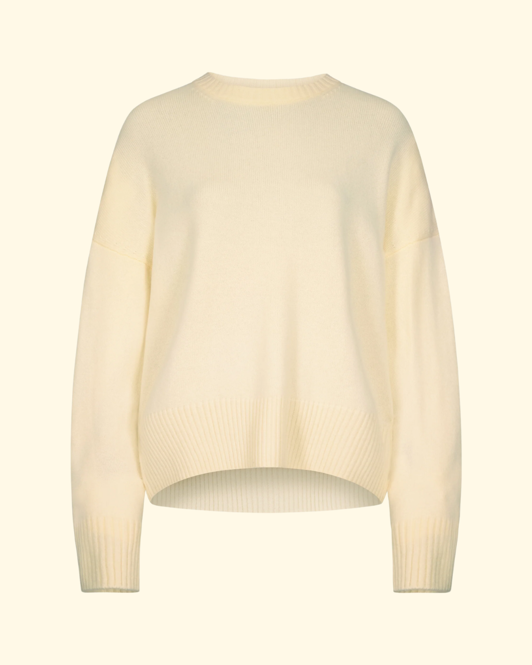 This sweater is made of pure cashmere. Its slightly oval fit creates an enveloping, effortless silhouette, complete with details including a crew neck, drop shoulders, ribbed details and vented cuffs.