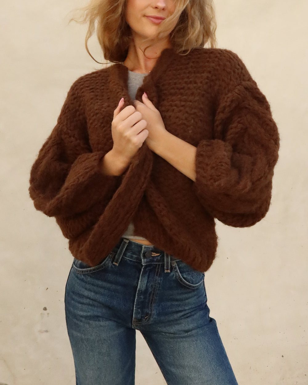Fleecy Alpaca Cable Bomber | Teddy Brown