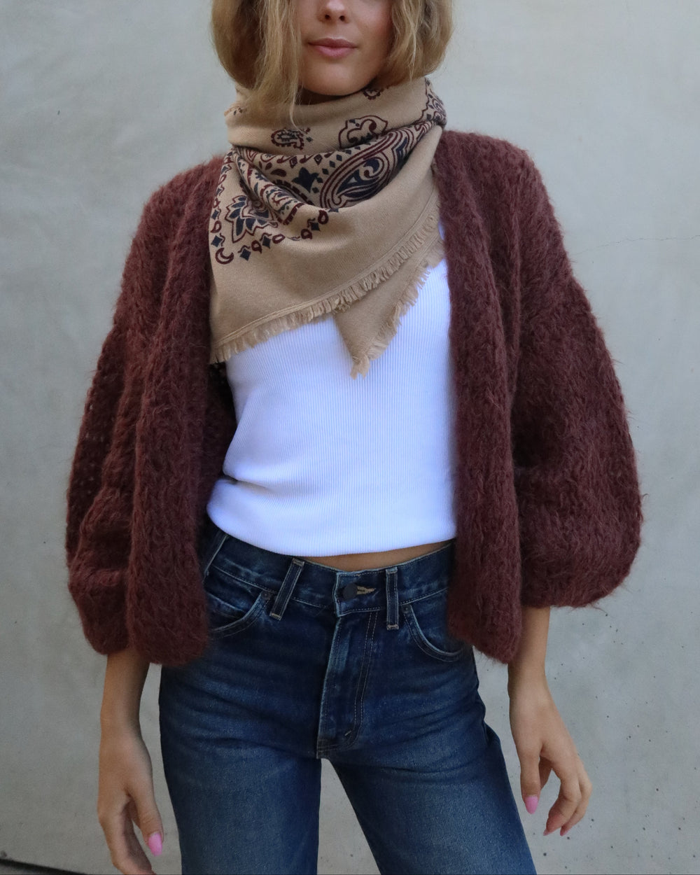 The favorite bomber cardigan, weaved from shaggy alpaca