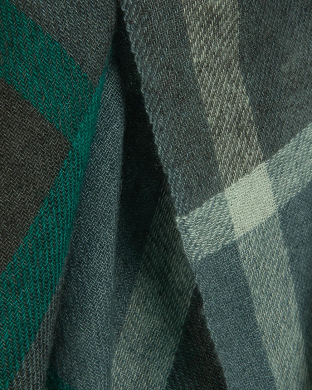Delicately knitted superfine cashmere shawl fused with a printed silk shawl and enhanced with a hand-felted finish. The exquisite quality of this unique piece is achieved by the skilled hands of many Nepali women who are passionate about their work. Inspiration comes from the chests used to store valuable and spiritual items in Tibetan homes. The images feature Buddhist protectors, Naga spirits and traditional motifs.