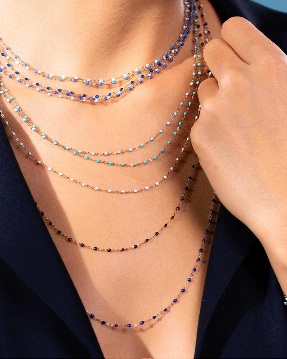 The Classic Gigi necklace by gigi CLOZEAU features 18 carat yellow gold, and striking Turquoise jewels for an everyday effortless appearance.