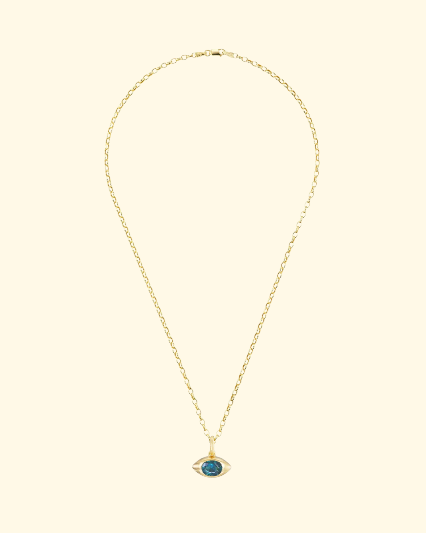 The deep blue tourmaline at the heart of this pendant symbolizes tranquility, wisdom, and inner strength, offering a profound elegance. Inspired by the sentimental lockets and brooches of the late 19th century, this modernized evil eye charm shimmers with depth and serenity.