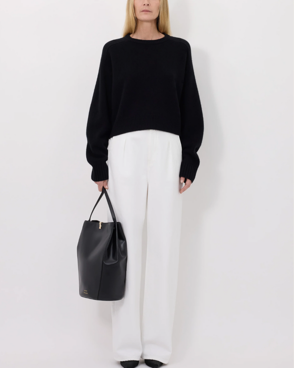 This sweater is a timeless Loulou de Saison style made of a soft wool cashmere blend. Its ample, slightly cropped cut creates a relaxed fit accentuated by details including long sleeves and drop shoulders. A trademark Loulou de Saison seashell is embroidered on its lower left side.