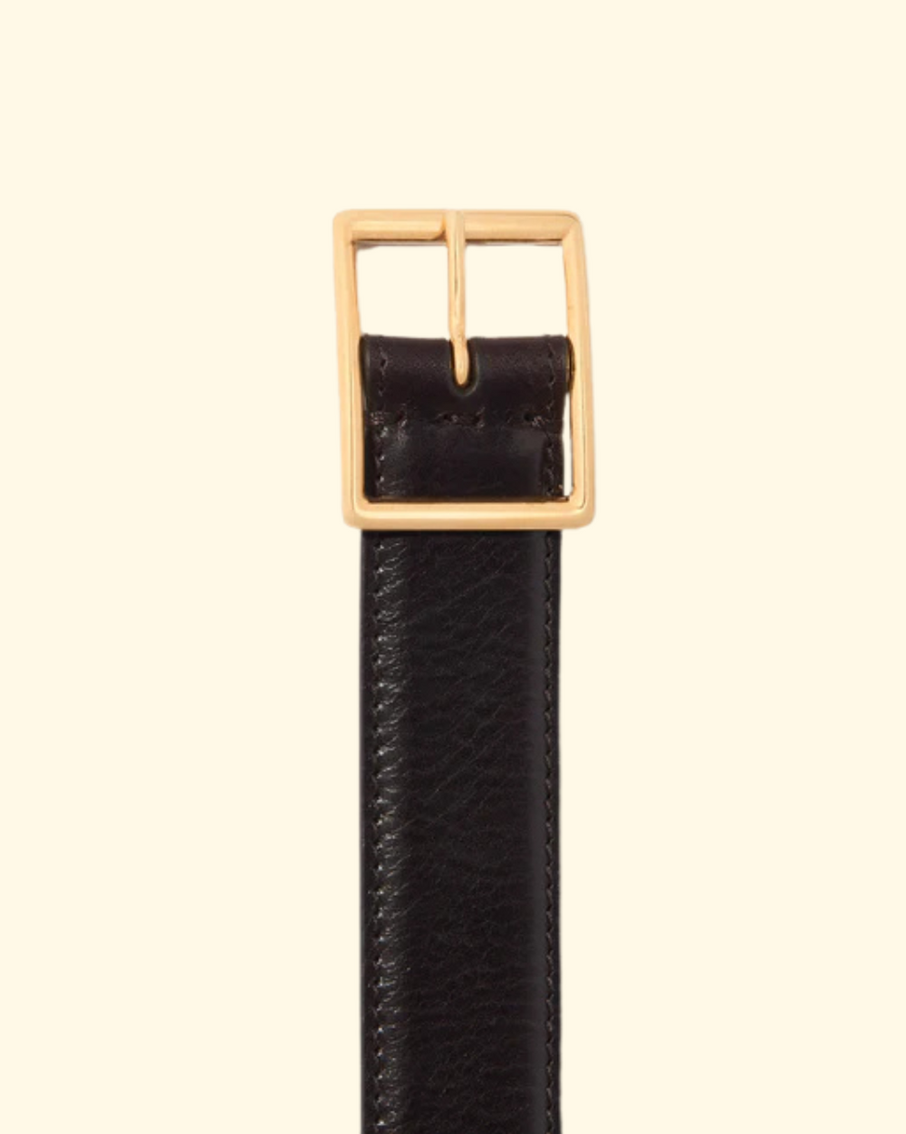 30mm wide belt. Italian smooth calfskin leather with leather lining. Bombe finish. Custom square buckle with Nili Lotan logo engraving on the back.