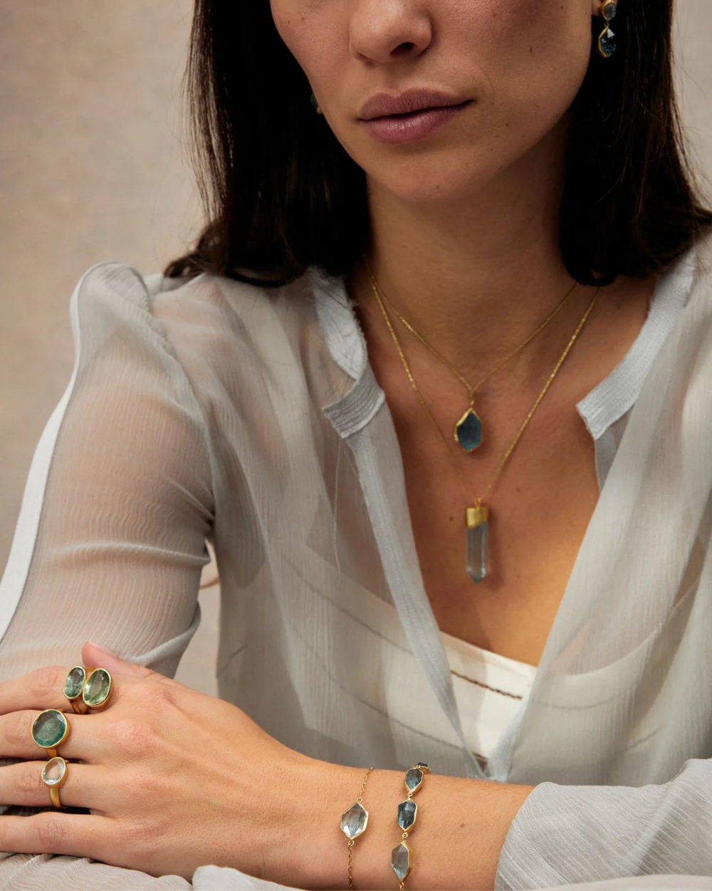 A collection of aquamarine and hints of green tourmaline creates a collection of soothing and balmy limpid gems.