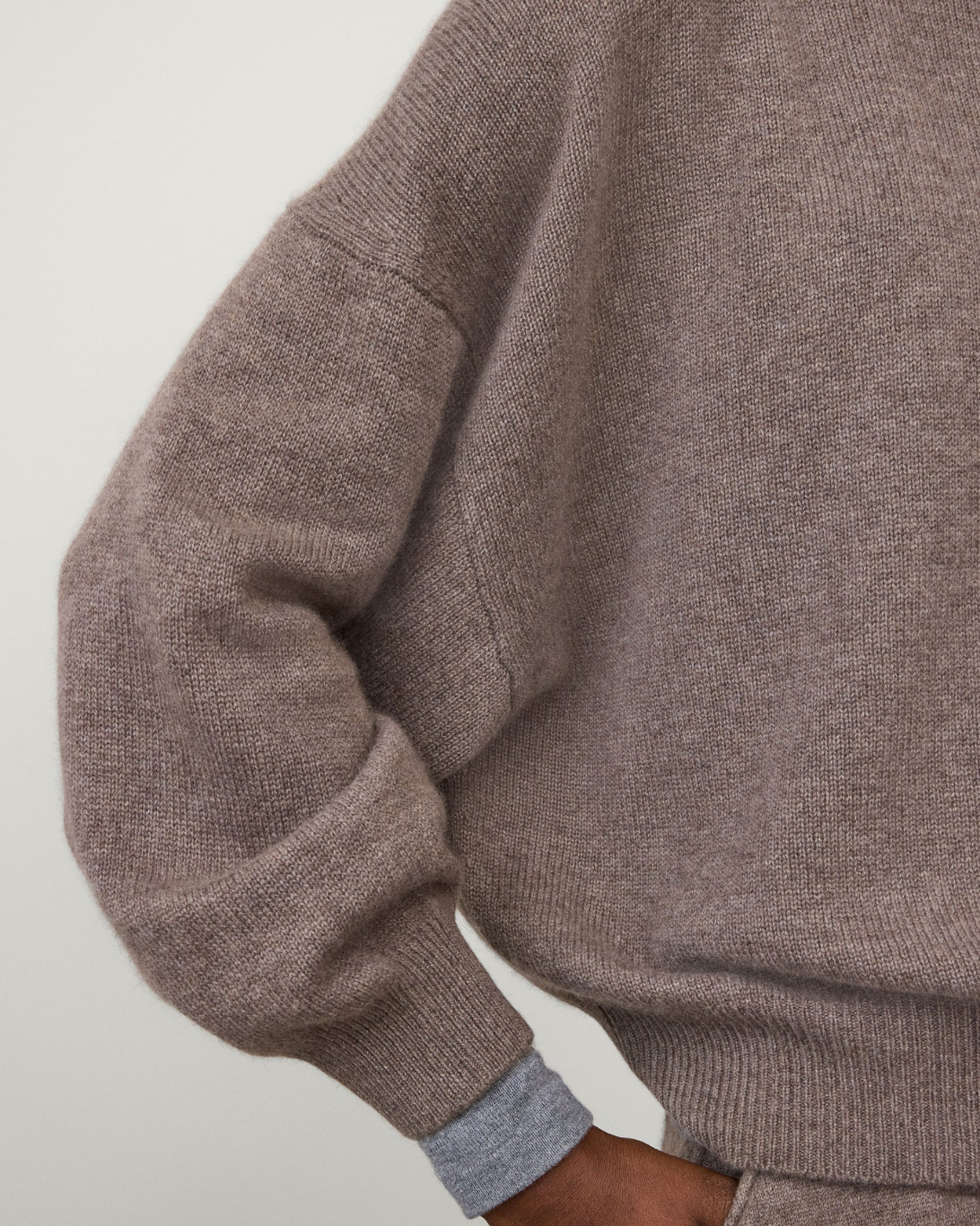 A rounded silhouette, the Veira sweater is crafted in our staple mid-weight cashmere for transeasonal wear. The relaxed fit, hip-length silhouette features a round neck, dropped shoulders, full-length sleeves and a ribbed hem.