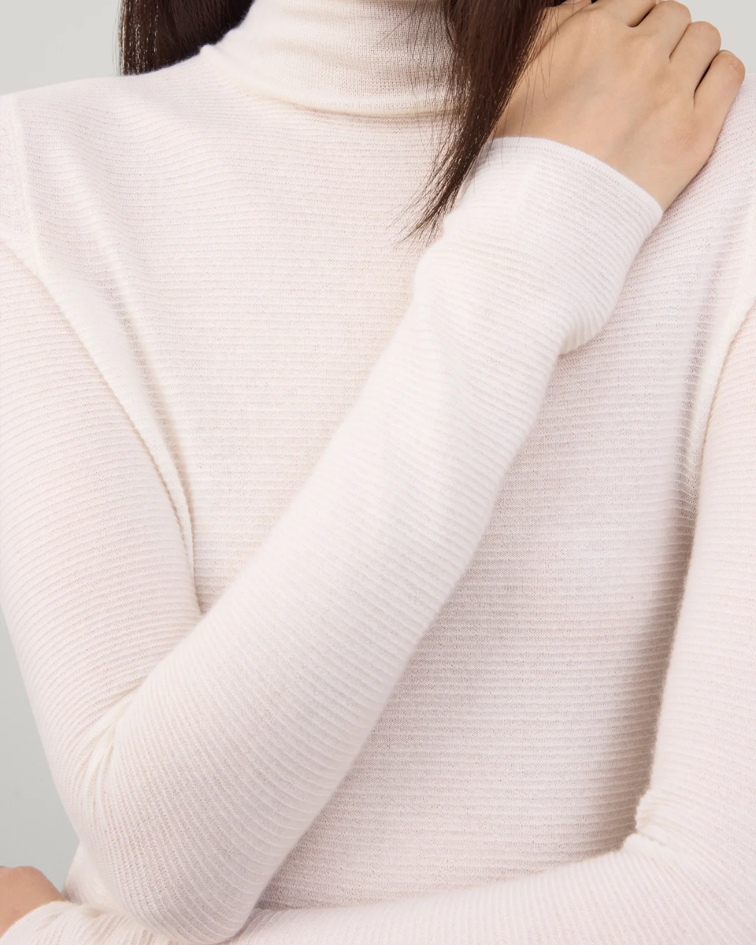 A delicate second skin layer, the Lory sweater is crafted in our finest 18 gauge rib knit cashmere with a reversed horizontal rib. The fitted, figure-skimming silhouette features a high neck, full-length sleeves and ribbed trims.