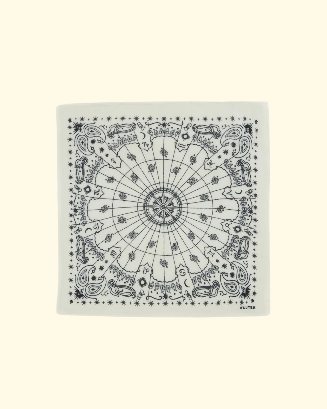 Small Bandana Hachi Astro white made from 100% cashmere. 2-threads printed jersey knitting