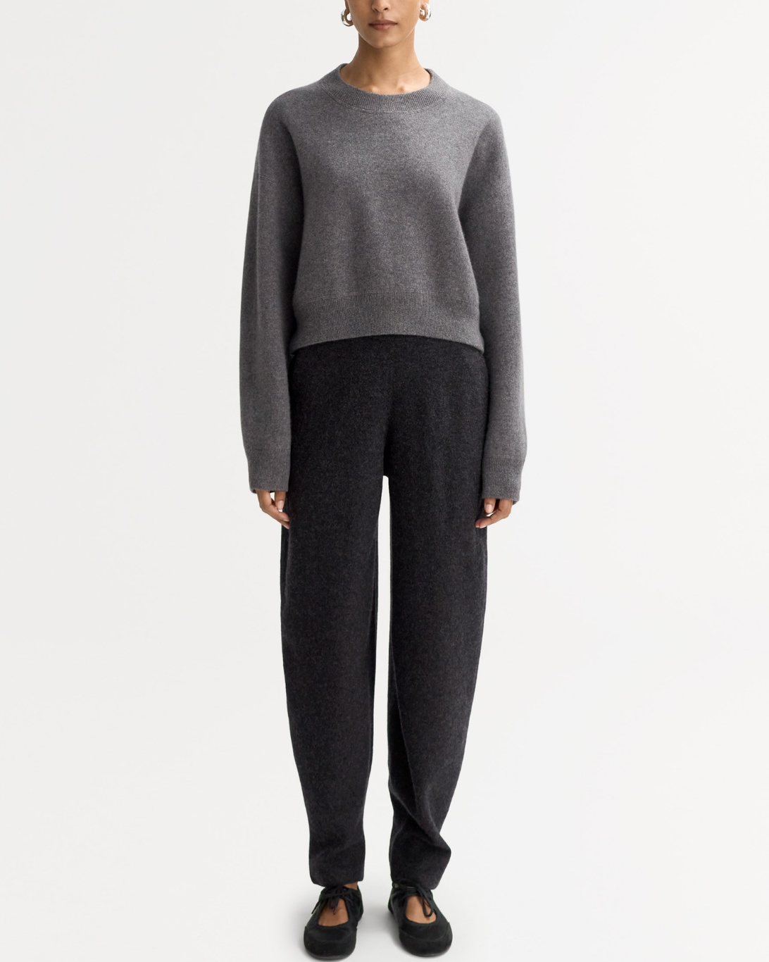 Fine knit, double faced crewneck sweater in 100% cashmere.
