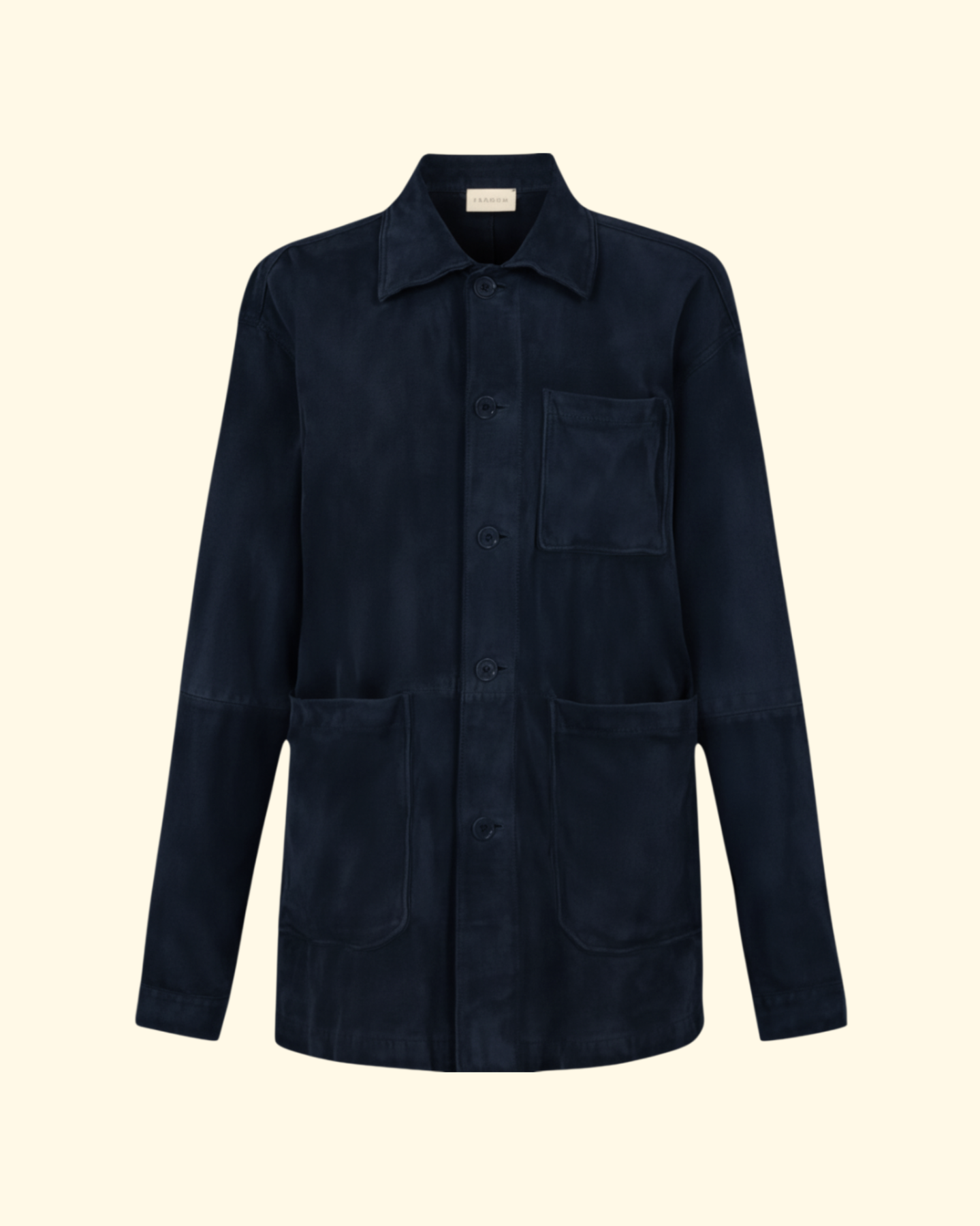 A luxurious 100% goat suede shirt with a refined button-down front and practical pockets. Designed with a 68 cm length for a modern silhouette, this premium piece is expertly crafted in India for timeless style and elevated everyday wear.