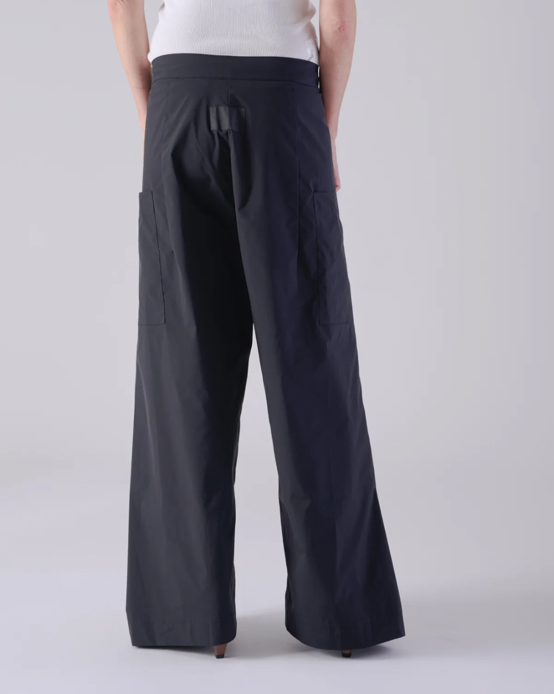 The linear, oversized patch pockets on the sides are a key design feature adding the casual look of cargo pants and creating a perfect balance between elegance and casual wear.