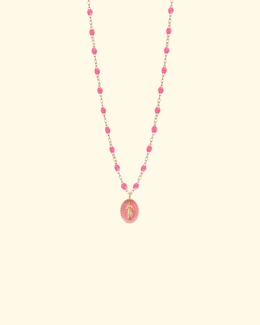 The Pink Madone pendant by gigi CLOZEAU features signature 18 carat Yellow Gold and eye-catching handcrafted detailing for a colorful appearance.