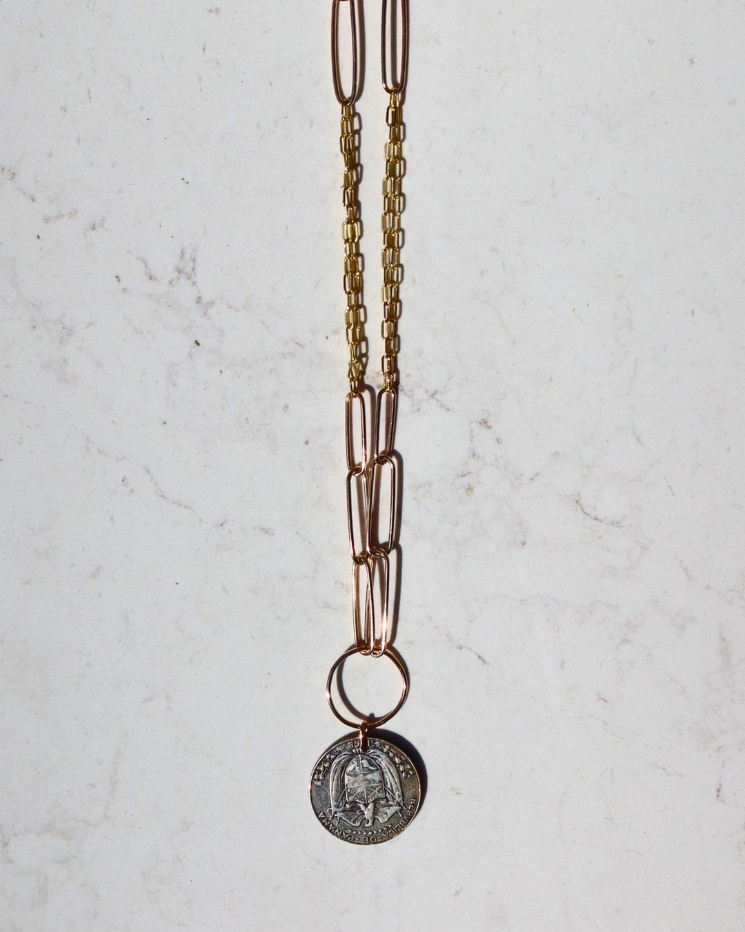 Established in 2003, Rachel’s jewelry is made entirely by hand in her California studio. An avid coin collector and vintage jewelry aficionado, she transforms antique coins and medallions into timeless, wearable pieces. Each design is crafted with 14k yellow or rose gold–filled and sterling silver chains and links, resulting in jewelry that feels both classic and contemporary.
