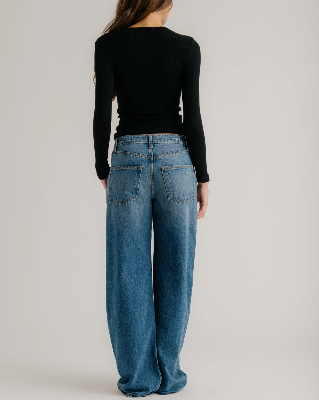 Fitted long-sleeve crewneck tee in ribbed knit.