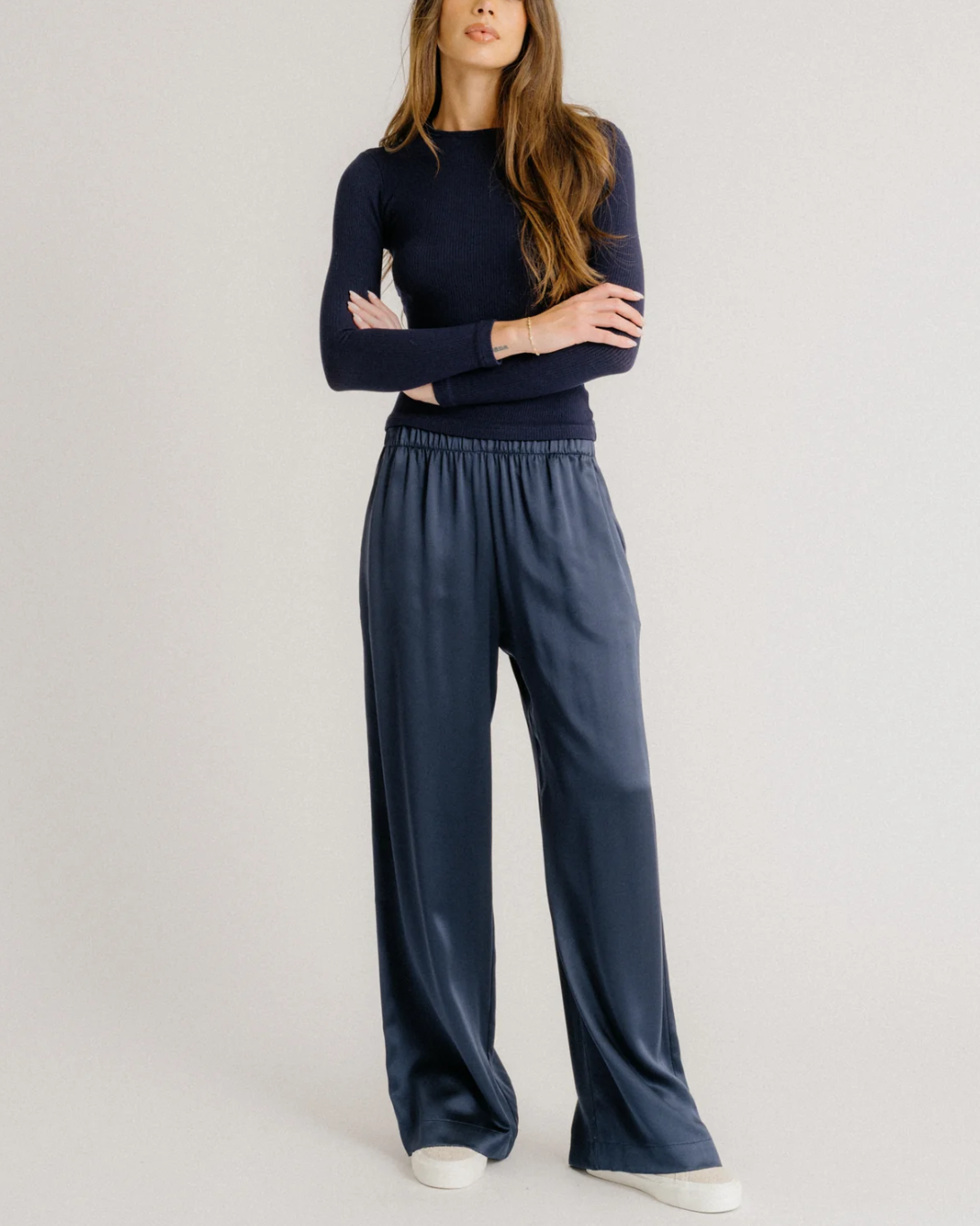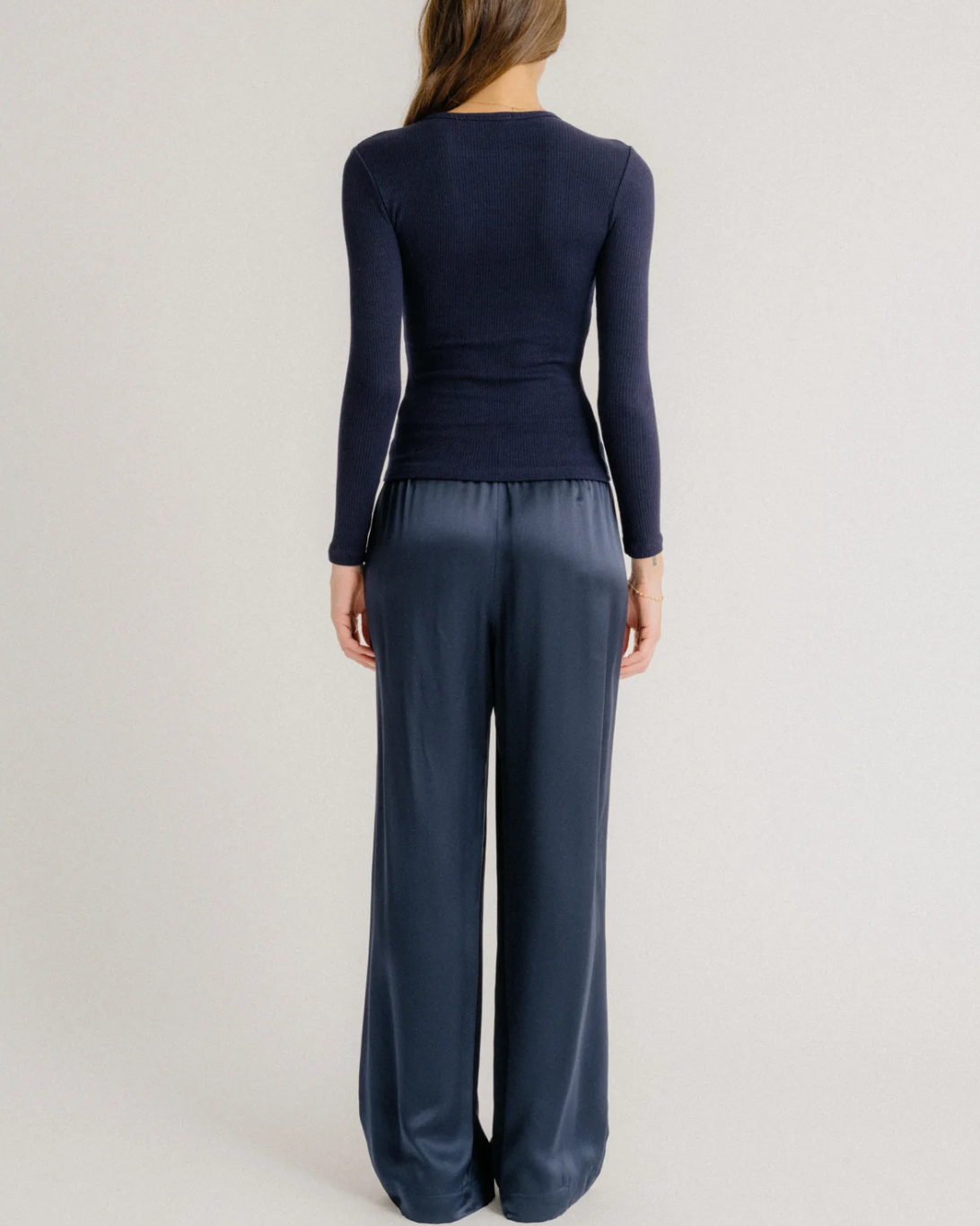 Fitted long-sleeve crewneck tee in ribbed knit.