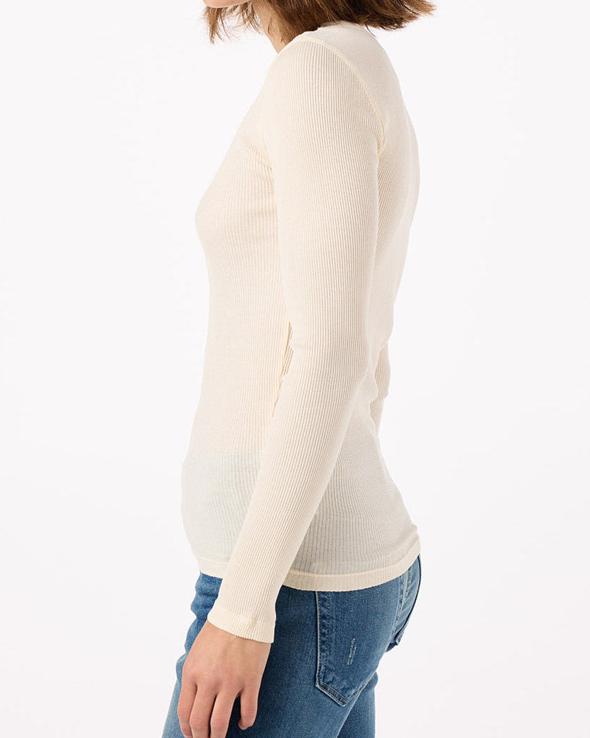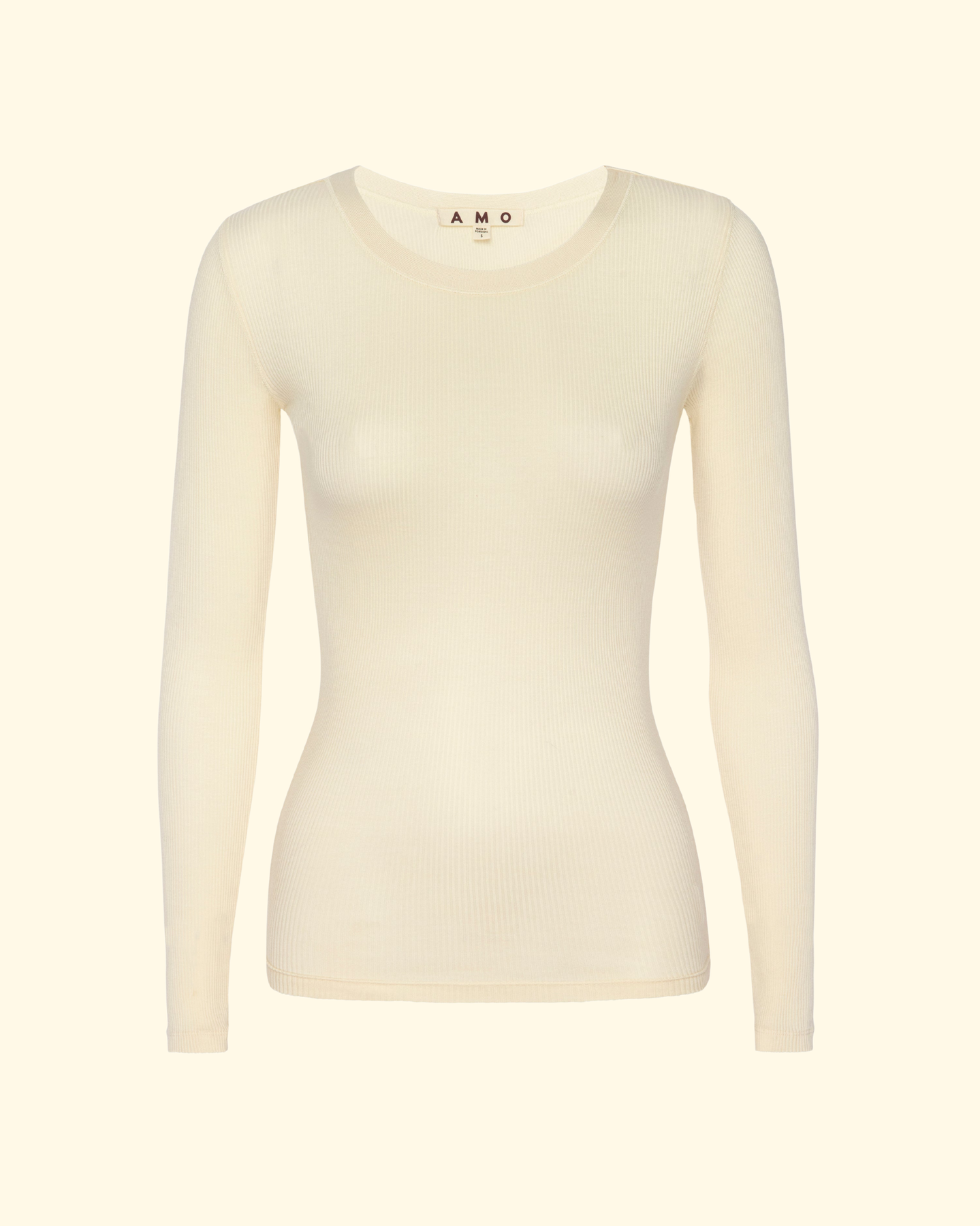 A fitted, ribbed crewneck crafted from silky cotton for all-day wearability, designed to be worn alone or styled as a layering piece.