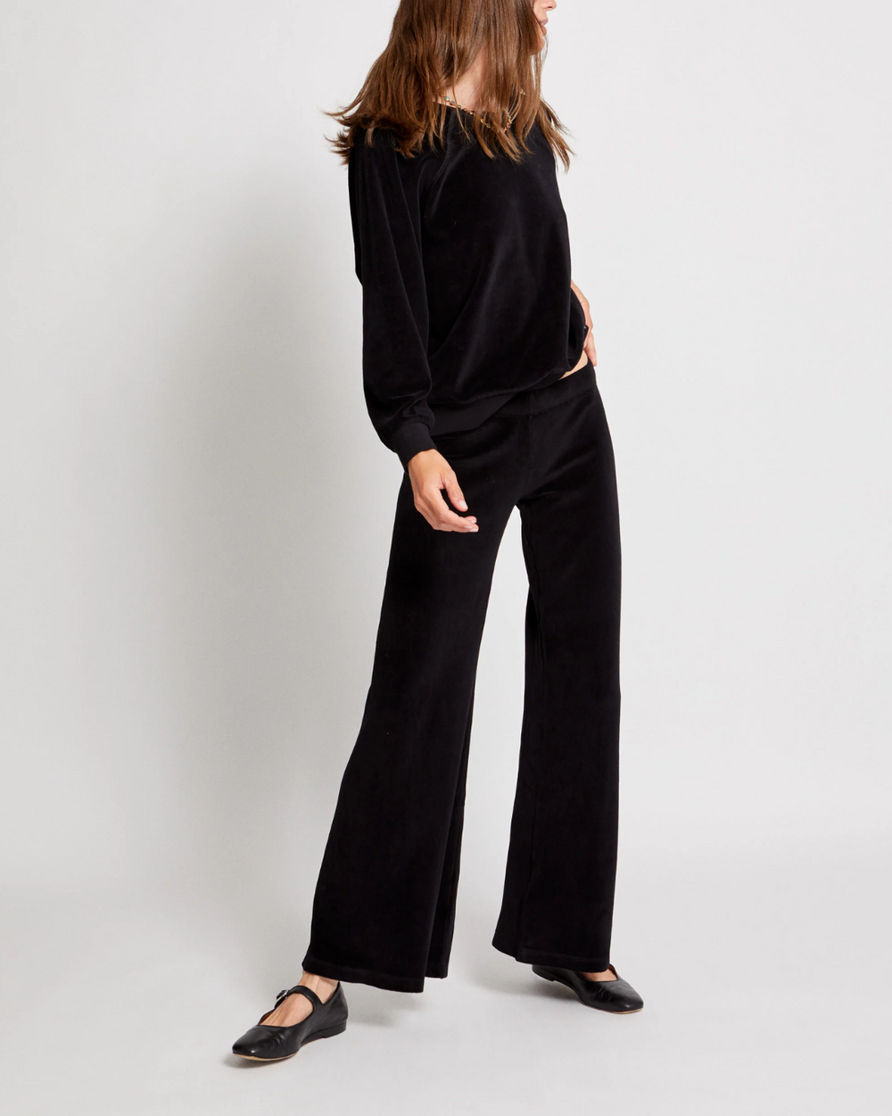 A body-con, softly fitted elastic waist that sits low on the hips, falling to a slightly flared finish. Crafted in a velour.