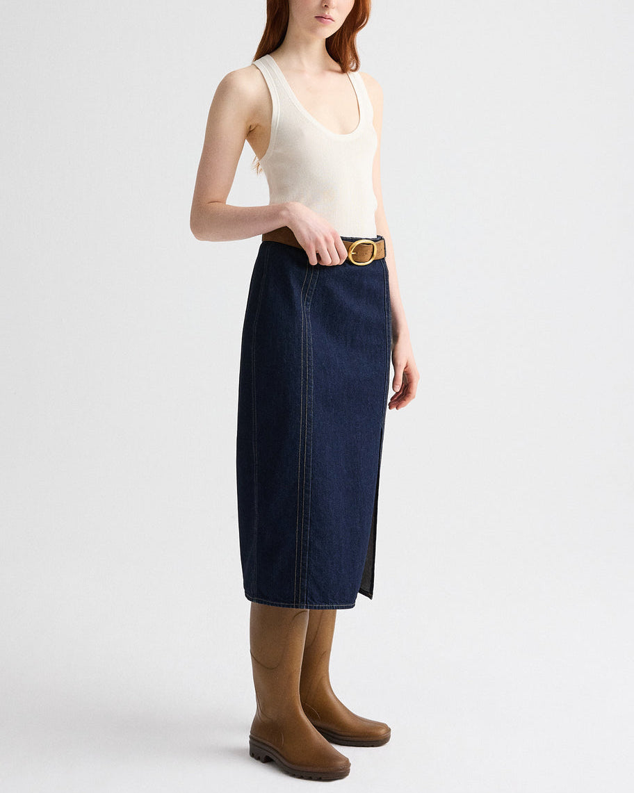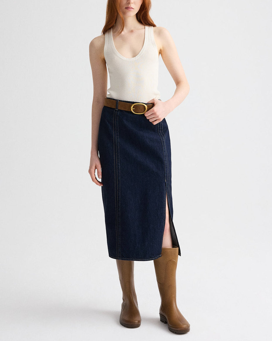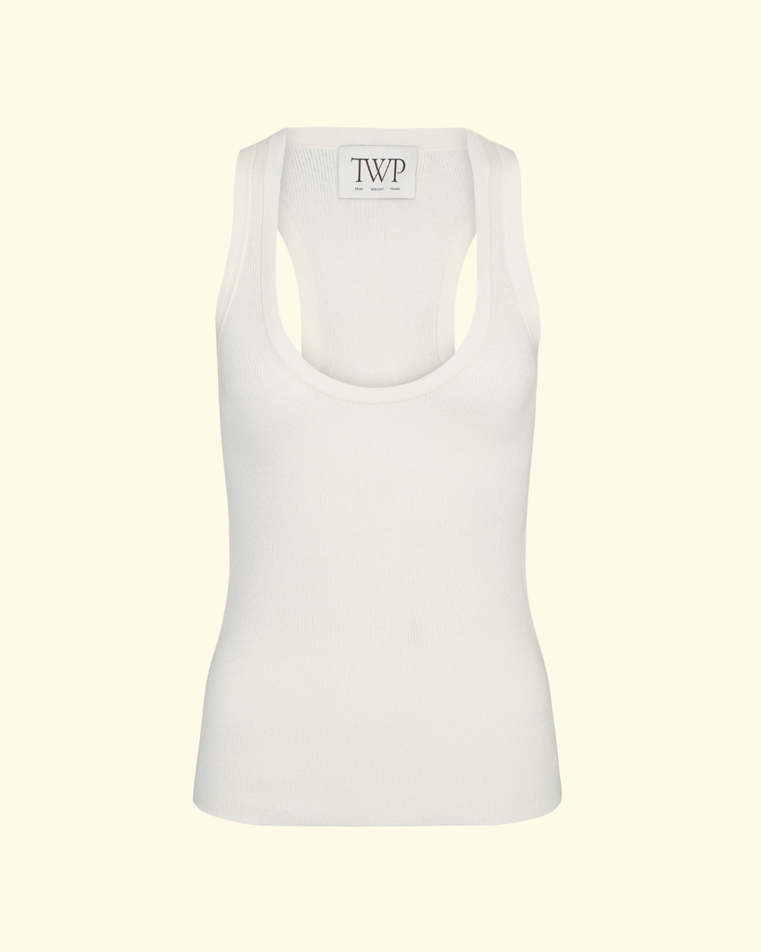 Ribbed scoop-neck tank in cotton-silk yarn. The First Layer Tank is designed with a scoop neckline and wide straps. Fitted through the body.