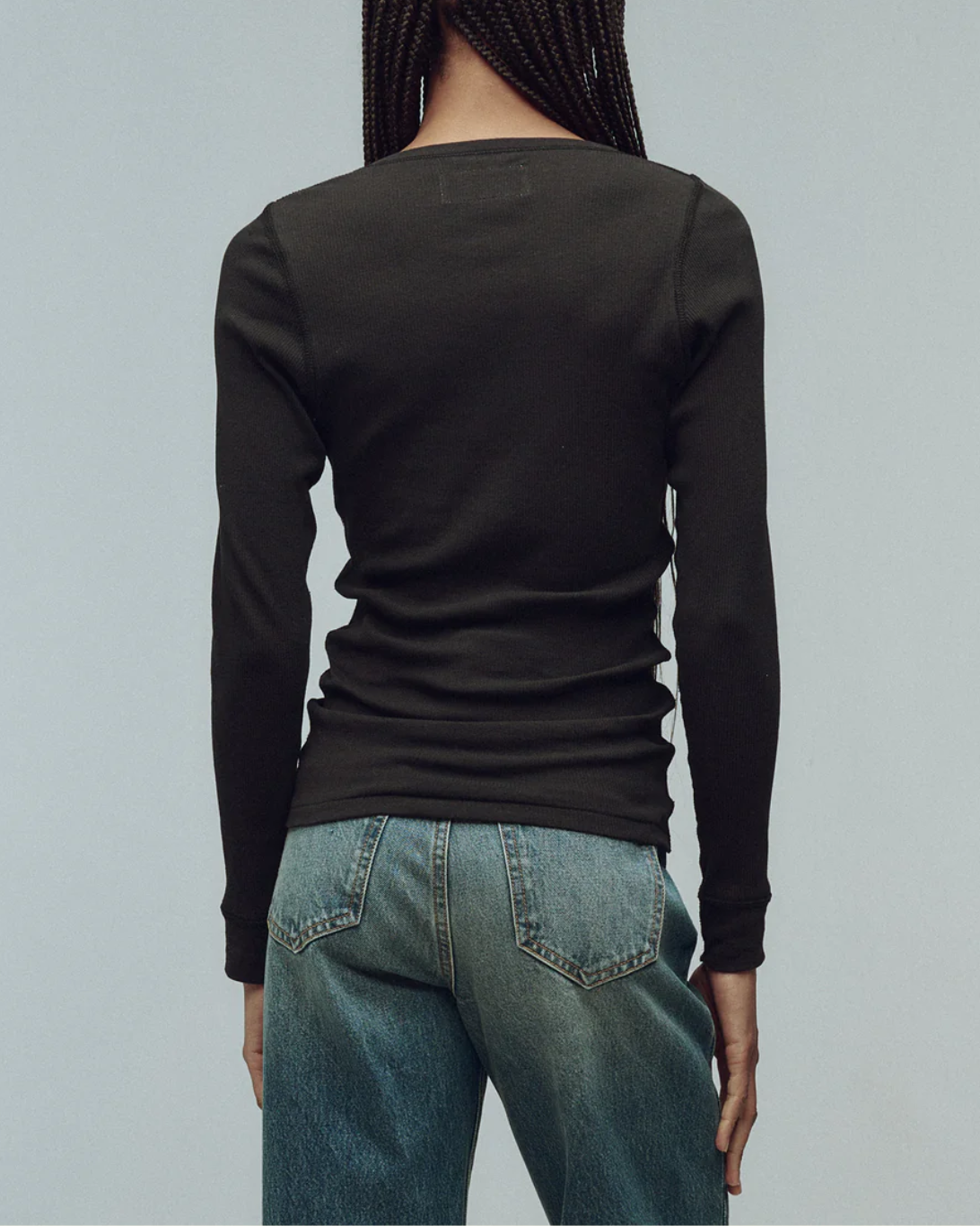 This vintage-inspired Rib Slim Henley. is a closet staple. Made in L.A. using a recycled cotton blend, the fabric has a hint of stretch for comfort and ease. Staying true to its original inspiration, it features a crew neckline with a Henley placket and delicate buttons.