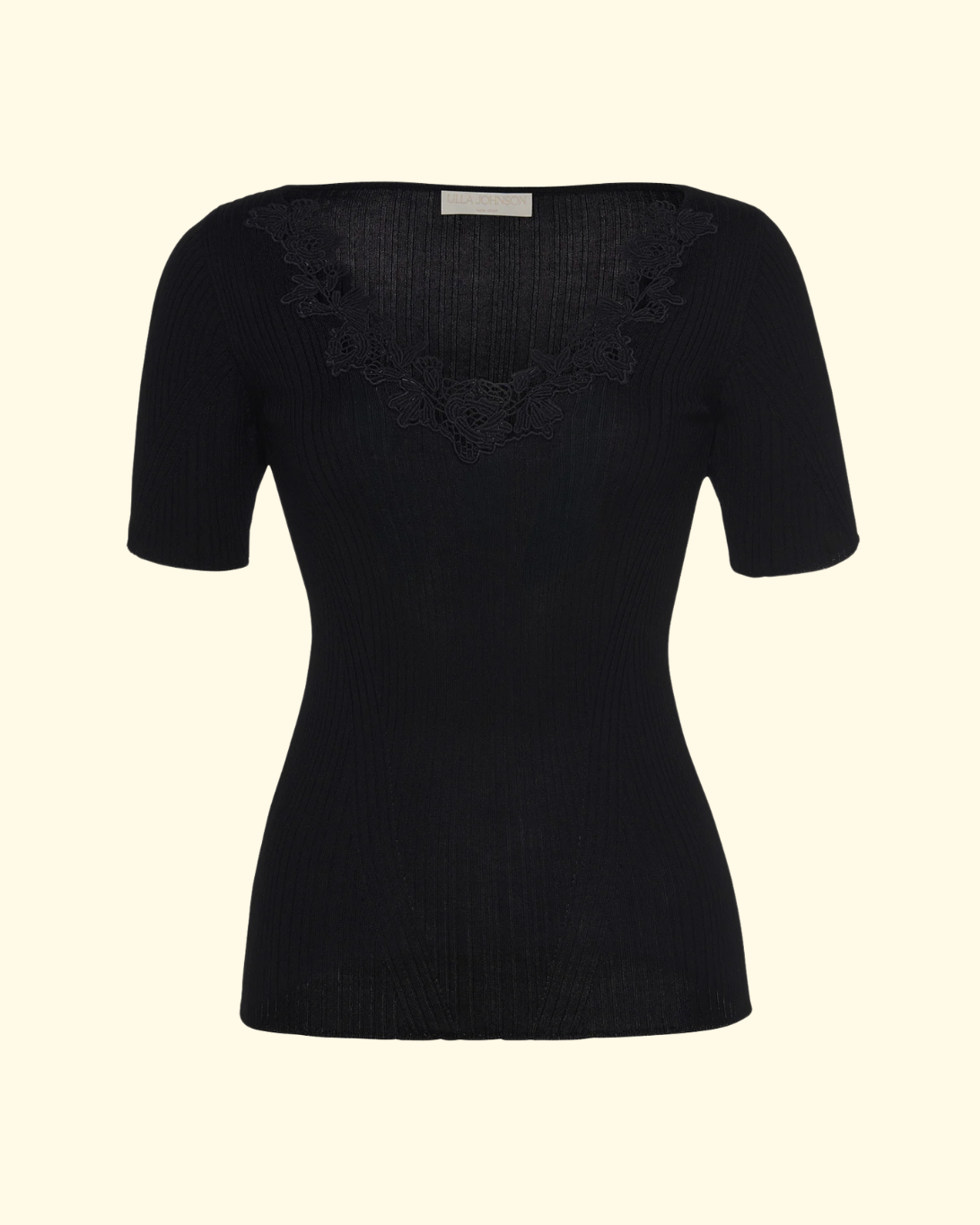 Trimmed with macramé lace florals, the Celeste Top is a wardrobe essential imbued with an artful touch. This black top has a slim fit that effortlessly tucks into denim and tailoring alike.