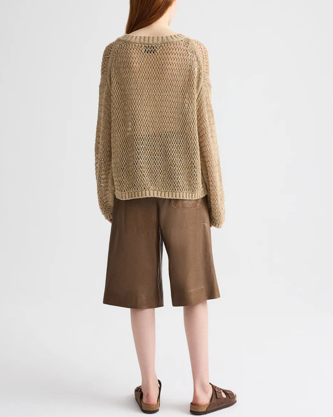 Long-sleeve wide crewneck pullover in cotton wool. Designed with a relaxed silhouette and open-knit construction. Finished with a wide crew neckline, dropped shoulders, and ribbed trim at the neckline, cuffs, and hem.