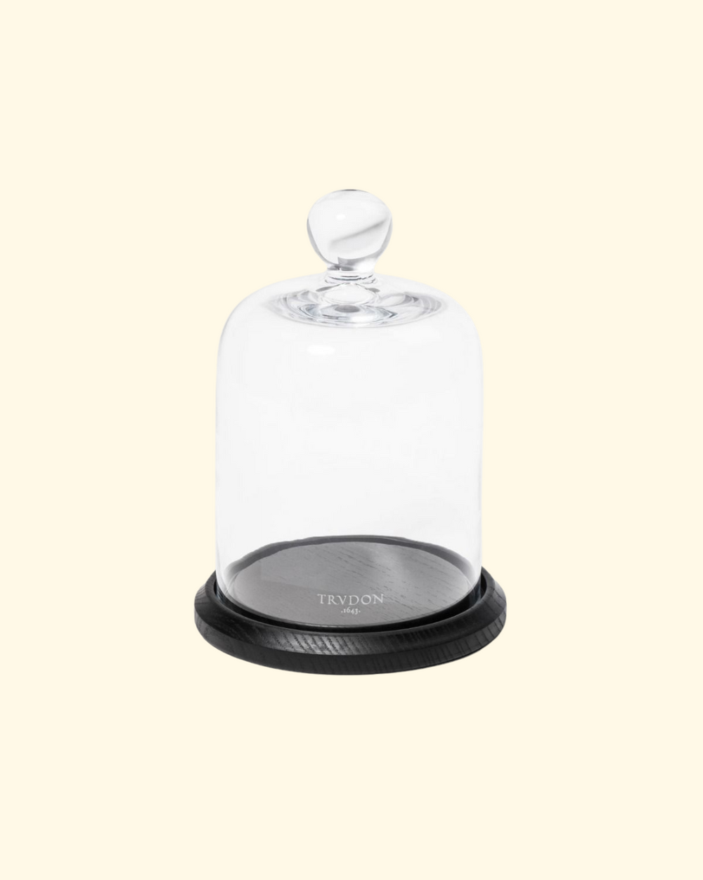 Throughout the 20th century, the wedding cloche progressively lost its symbolic function in the home and entered into the realm of a collectible or interior decoration. Since the opening of its boutique in Paris, Trudon has utilized these traditional glass bells to display candles. These cloches have become part of an important house ritual, as they are carefully lifted to reveal the candle’s exceptional scents. Today, Trudon makes these glass bells available to allow admirers of the brand to glorify their candles in their own interiors. The blown glass dome is decorated with the Trudon logo and paired with a handcrafted and polished wooden base. Connected to the storied history of Trudon, this luxurious object protects the candle and concentrates its perfume. La Cloche is perfect for the classic candle but the small candle fits also.