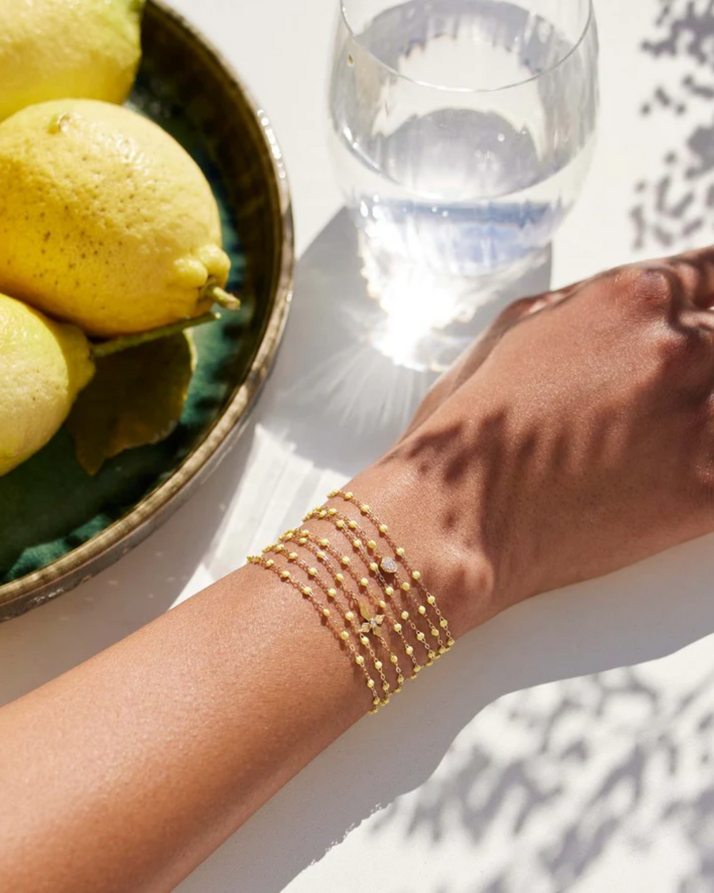 The Classic Gigi bracelet by gigi CLOZEAU features 18 carat Yellow Gold, and unique Mimosa jewels for a simple, everyday look.
