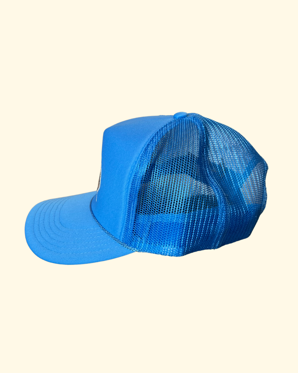 Lightweight and breathable, this custom Wrights trucker hat in azure is designed for sunny days and warm weather. Featuring a classic mesh back and adjustable fit, it’s perfect for beach days, hikes, or any summer adventure.