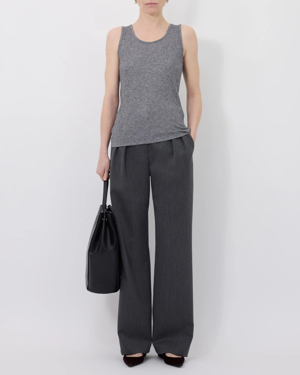 This tank top is a classic Loulou de Saison style made of a ribbed viscose and wool blend jersey. The fit is timeless. A trademark Loulou de Saison seashell is embroidered on its lower left side.