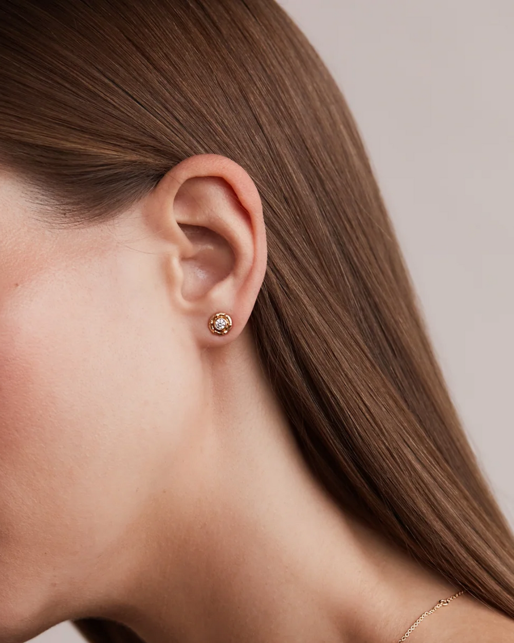 Aurifex Stud Earrings in Pearl | 18k Yellow Gold